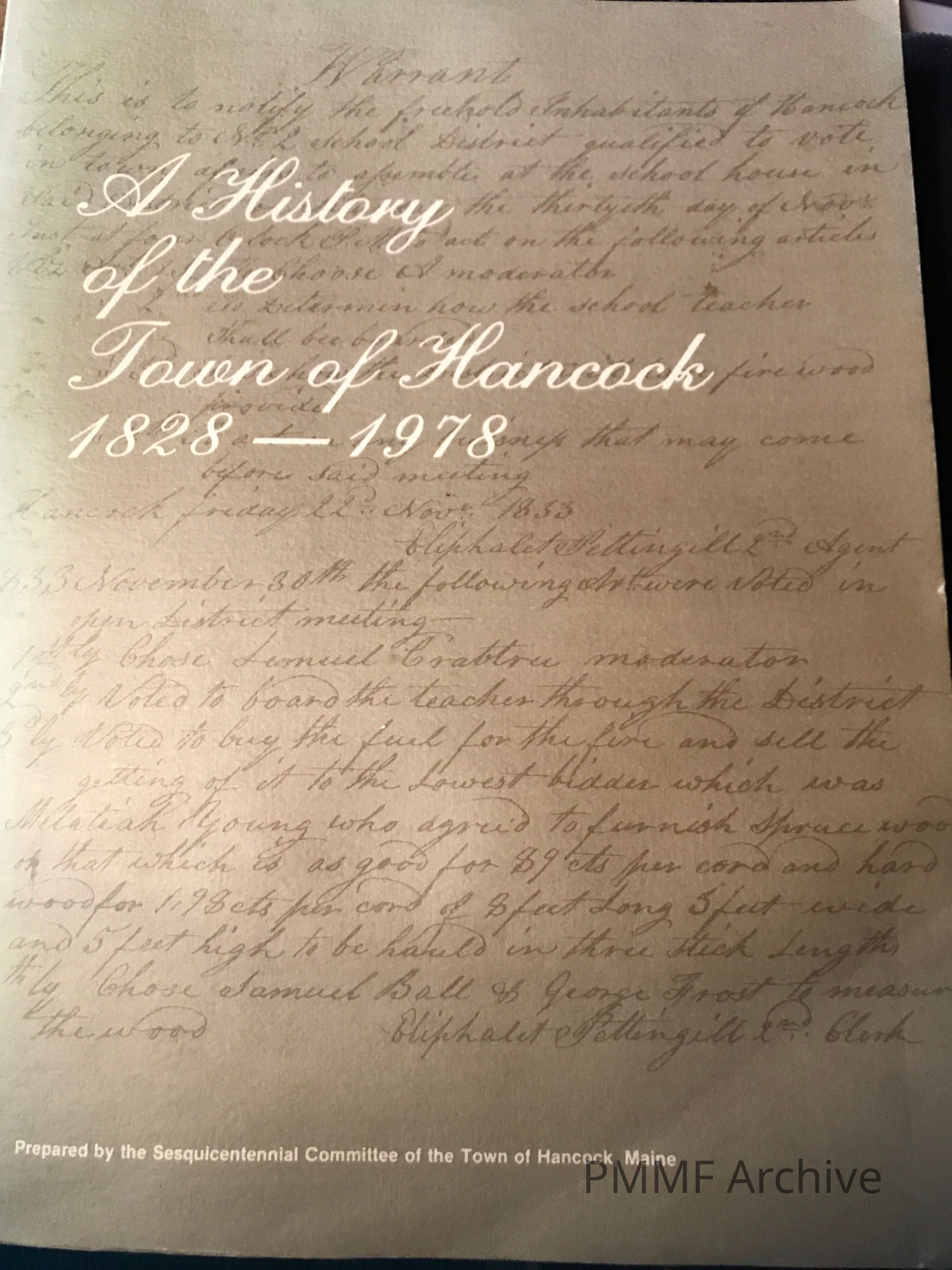Prepared by the Sesquicentennial Committee of the Town of Hancock, Maine