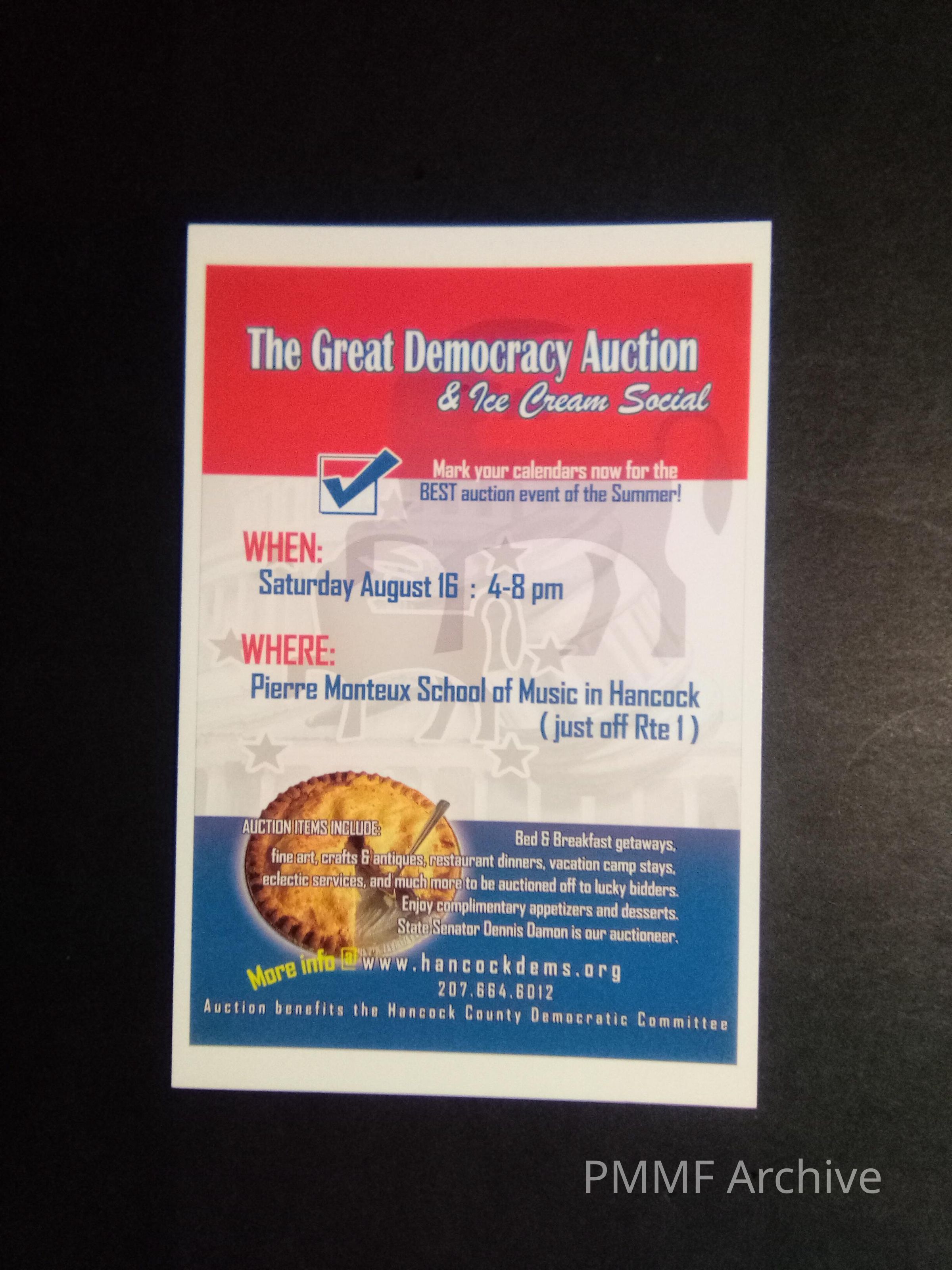 The Great Democracy Auction & Ice Cream Social [flyer]