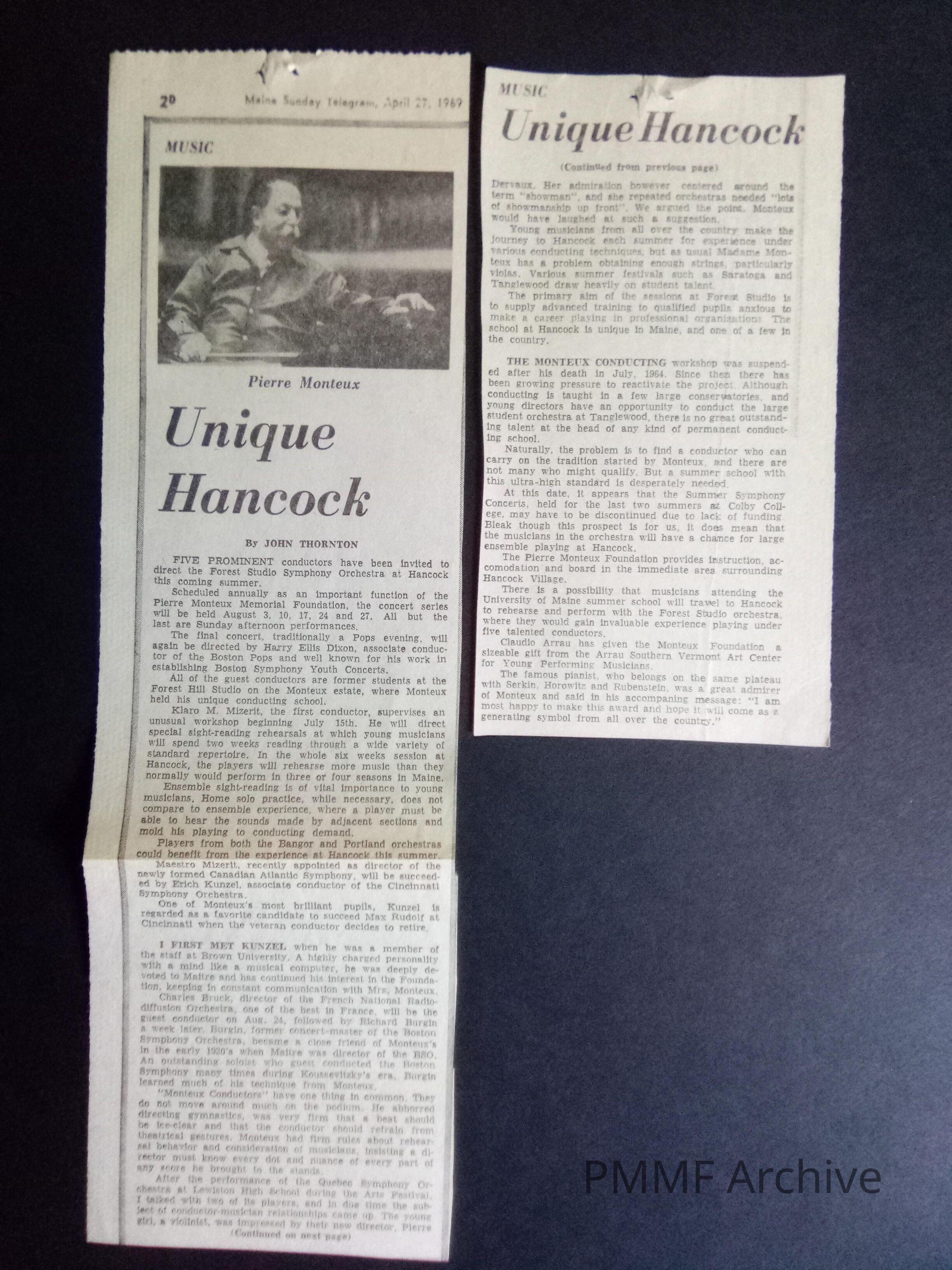 Unique Hancock "Five prominent conductors have been invited to direct the Forest Studio Sympnony..." [Article from Maine Sunday Telegram 1969]Created By