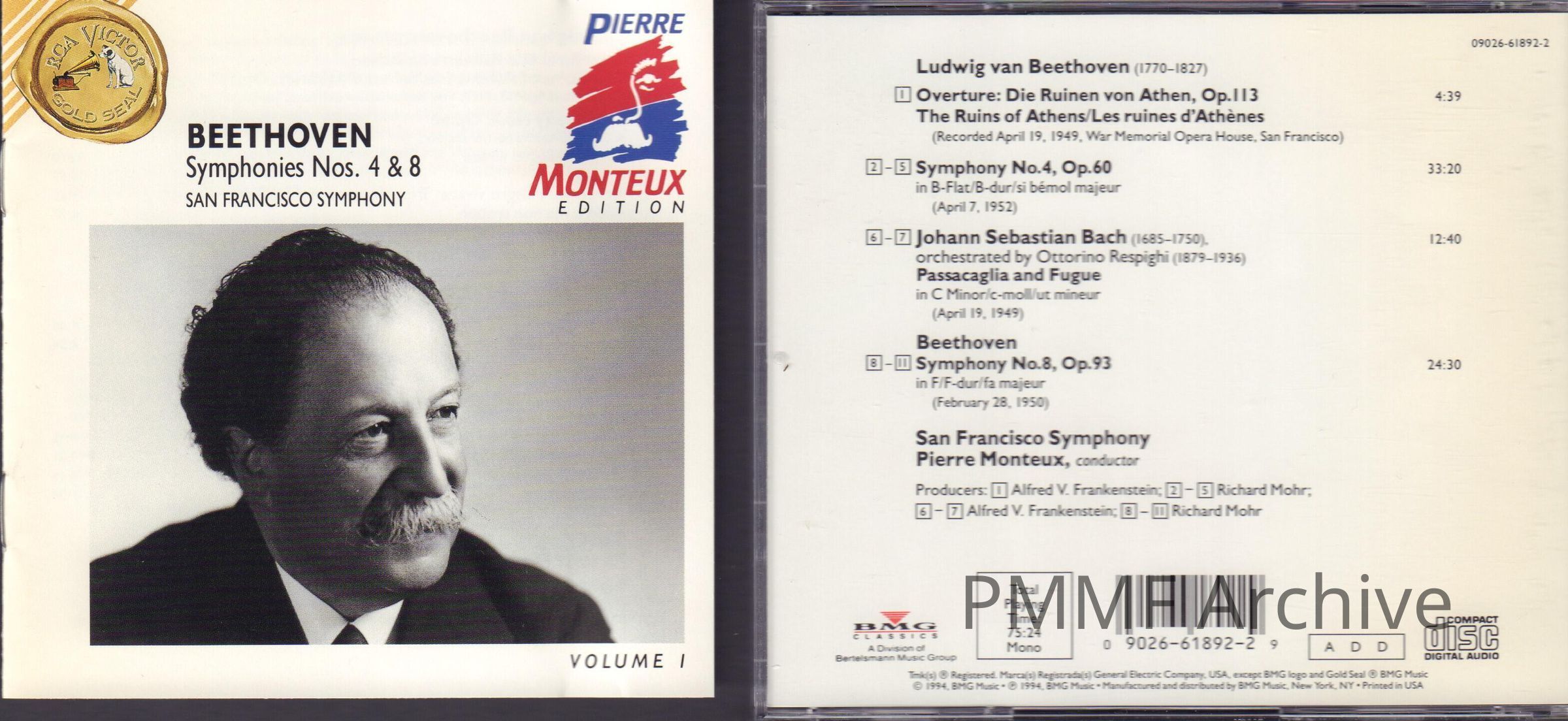 VOLUME 1 OF "PIERRE MONTEUX EDITION." BEETHOVEN: SYMPHONIES NOS. 4 & 8; SAN FRANCISCO SYMPHONYEntry/Object ID