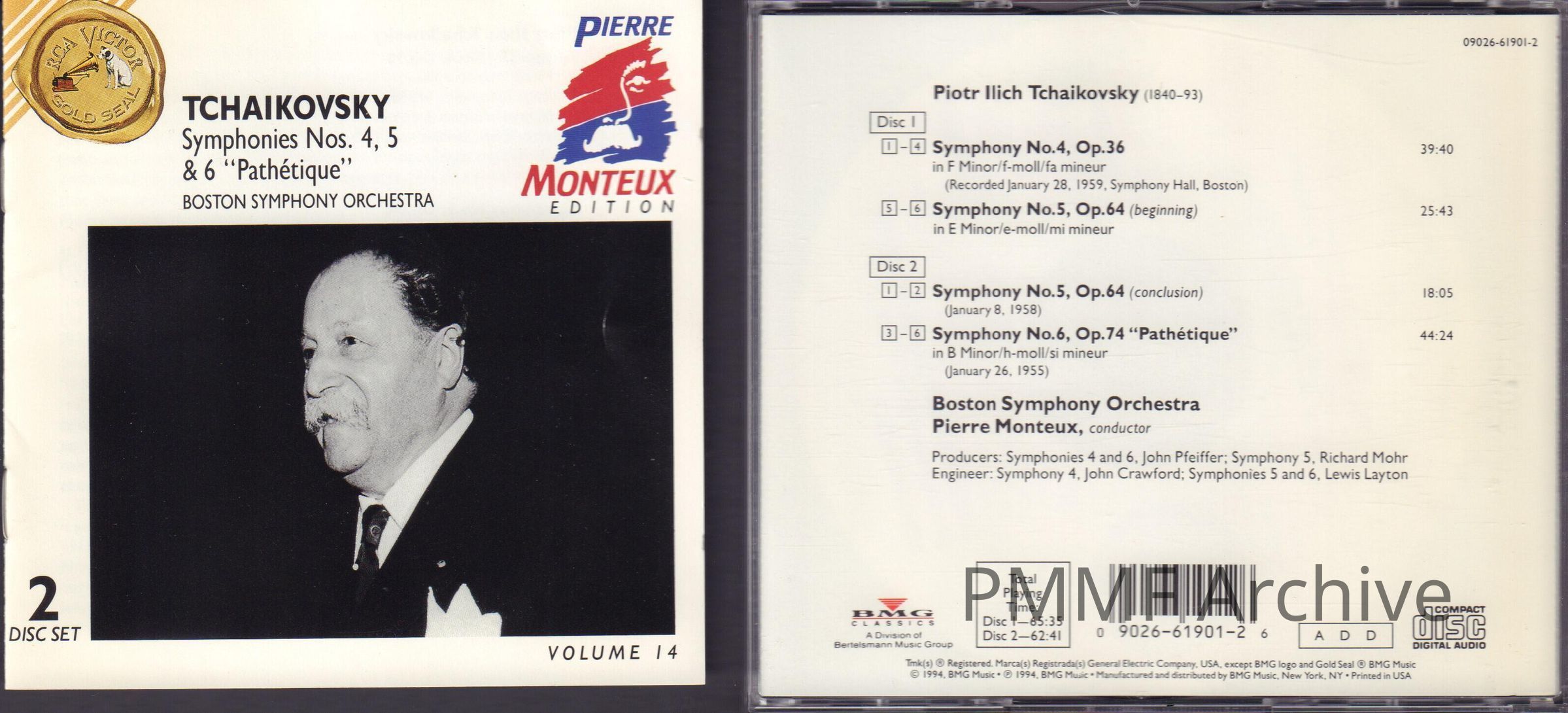 VOLUME 14 OF "PIERRE MONTEUX EDITION." TCHAIKOVSKY: SYMPHONIES NOS. 4, 5 & 6 "PATHETIQUE" BOSTON SYMPHONY ORCHESTRA.Entry/Object ID