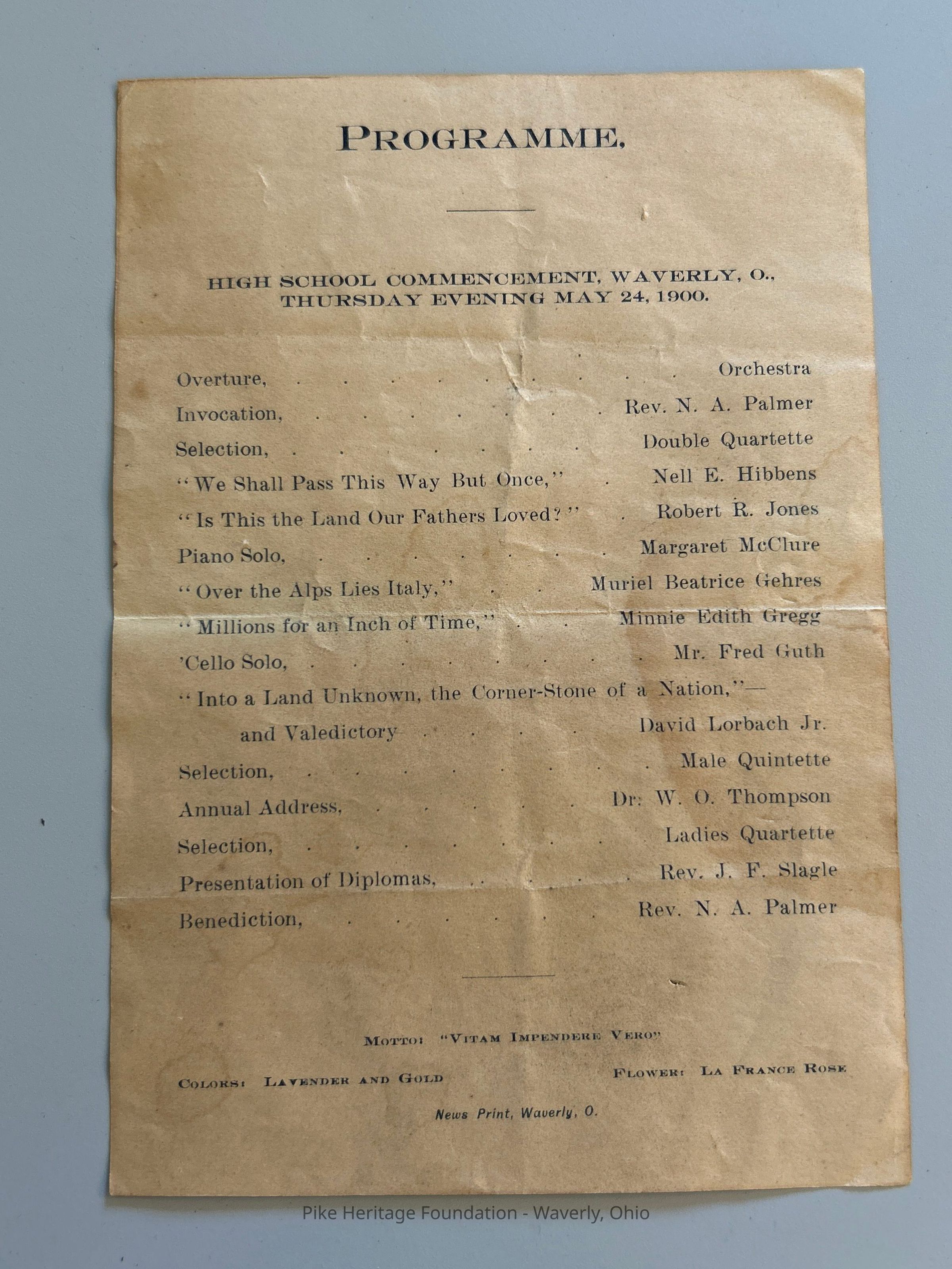 Waverly High School Commencement Programme - 1900Entry/Object ID