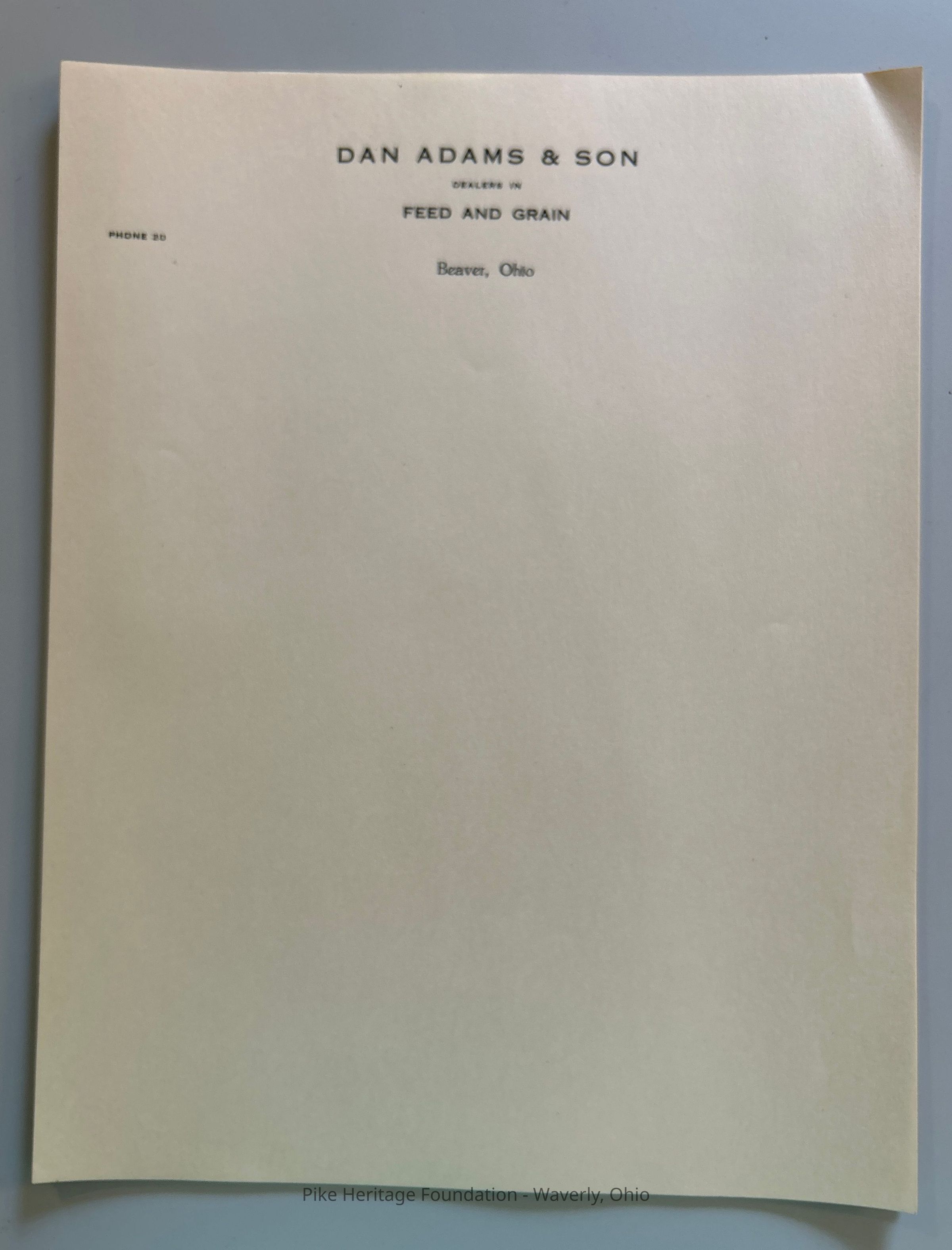 11 Sheets of stationary from the Adams Feed and Grain business located in Beaver, Ohio.Collection