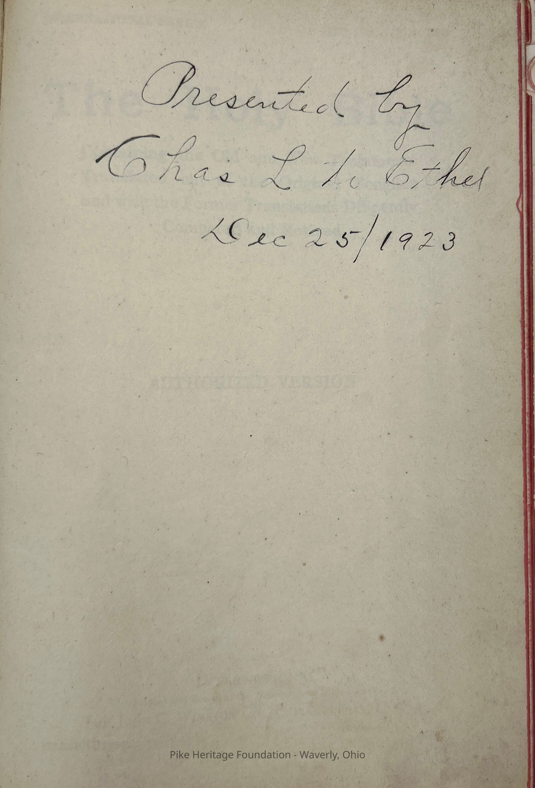 Holy Bible presented to Ethel Greenbaum by Charles Louis Greenbaum on Christmas Day, 1923.Collection
