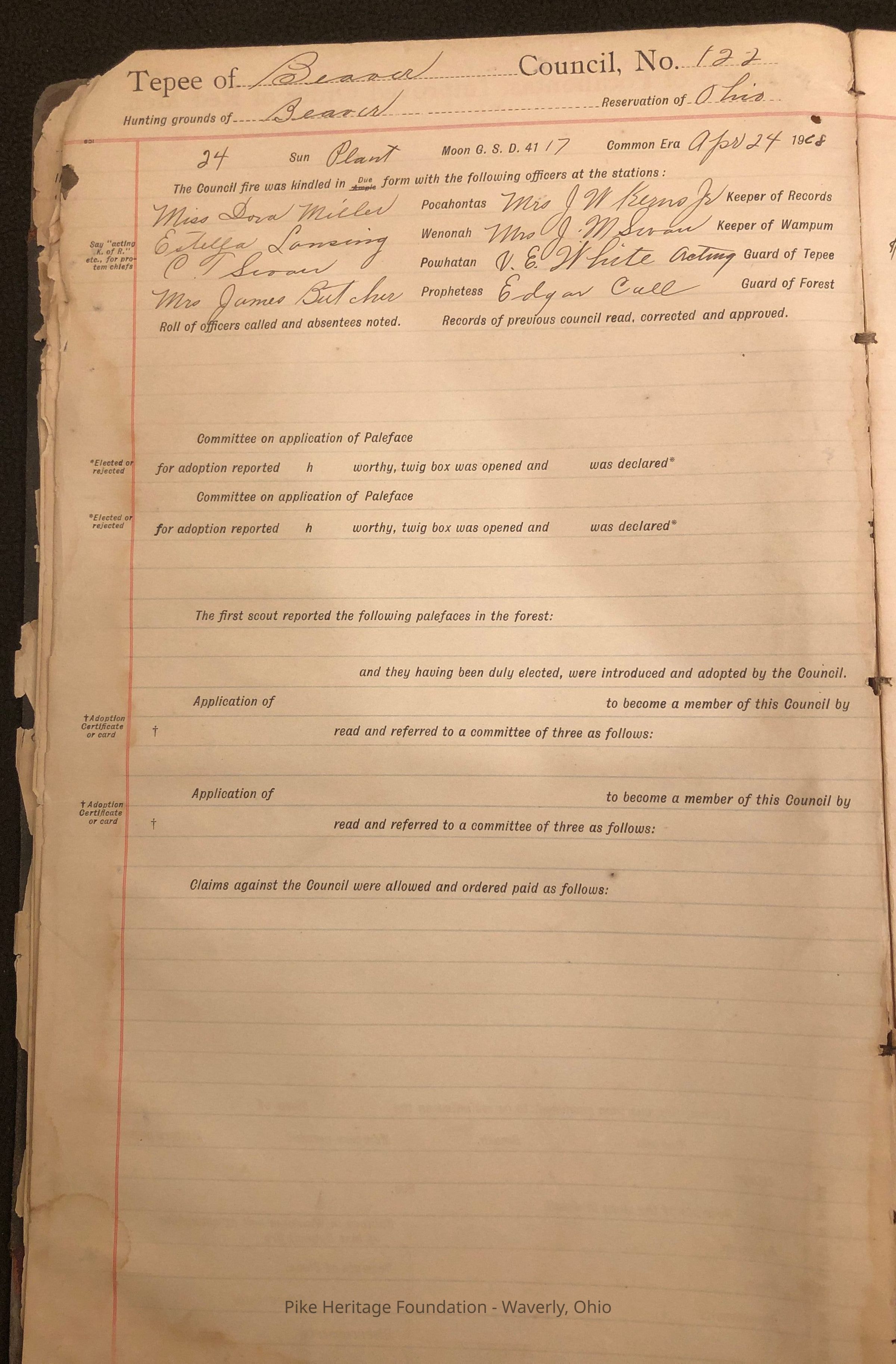 Membership book dating from April 1908 to July 1910. Organization was located in the Village of Beaver, Pike County, OhioCollection