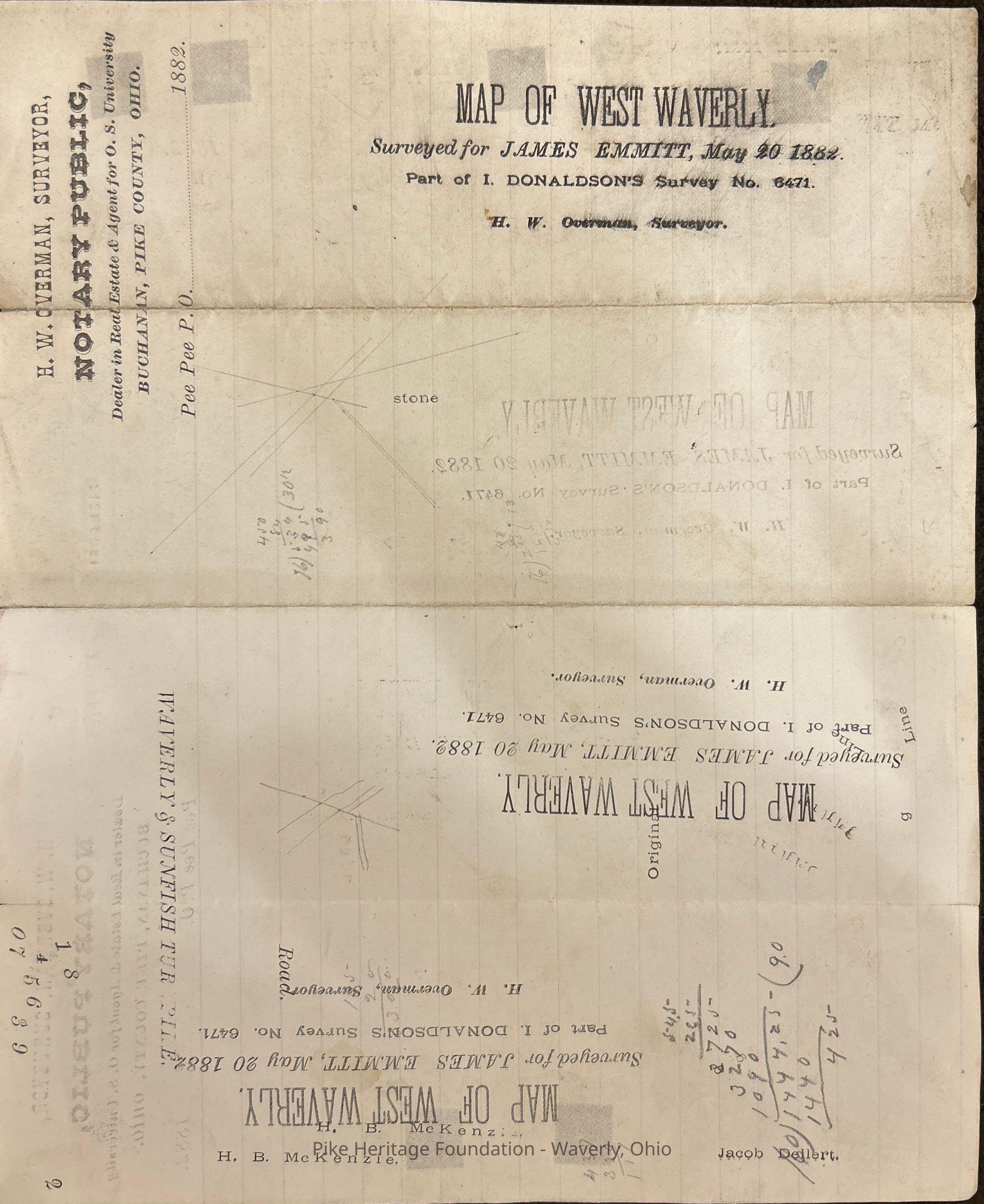 Map and survey of west Waverly, Ohio by surveyor Henry W. Overman for James Emmitt dated May 20, 1882.Collection