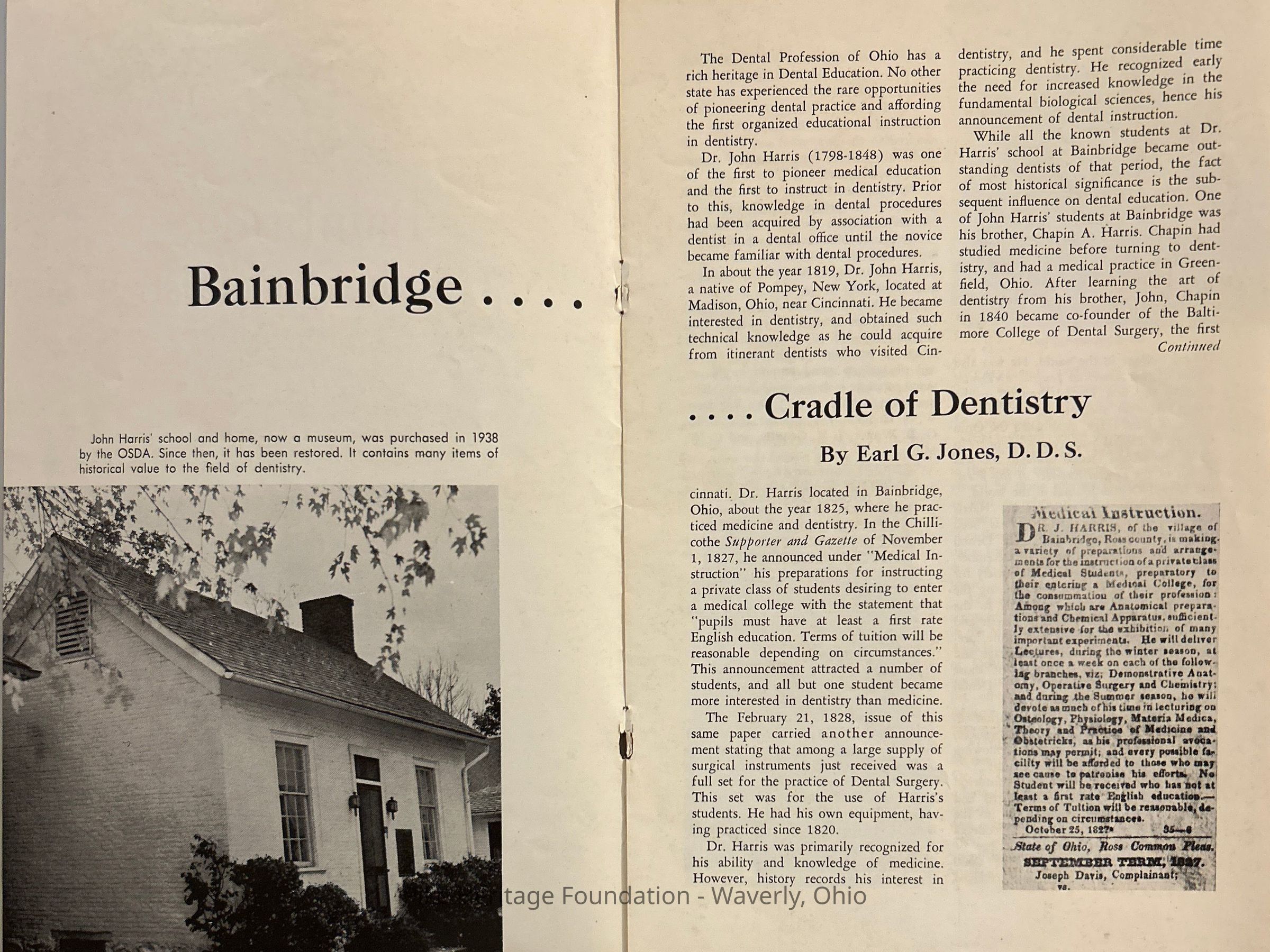 Bainbridge Cradle of Dentistry BookletEntry/Object ID