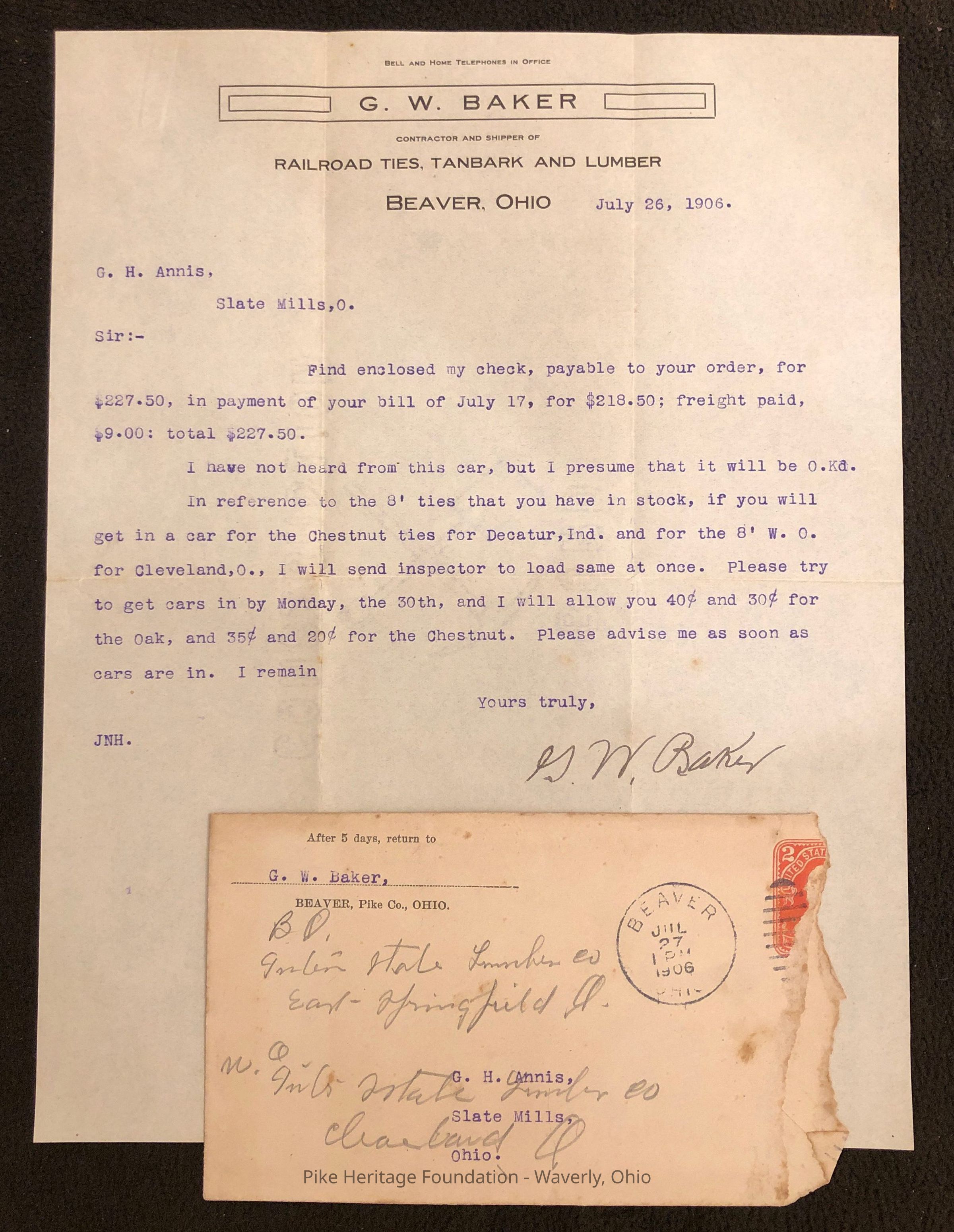 G. W. Baker Company Letterhead and Envelope - 1906Entry/Object ID