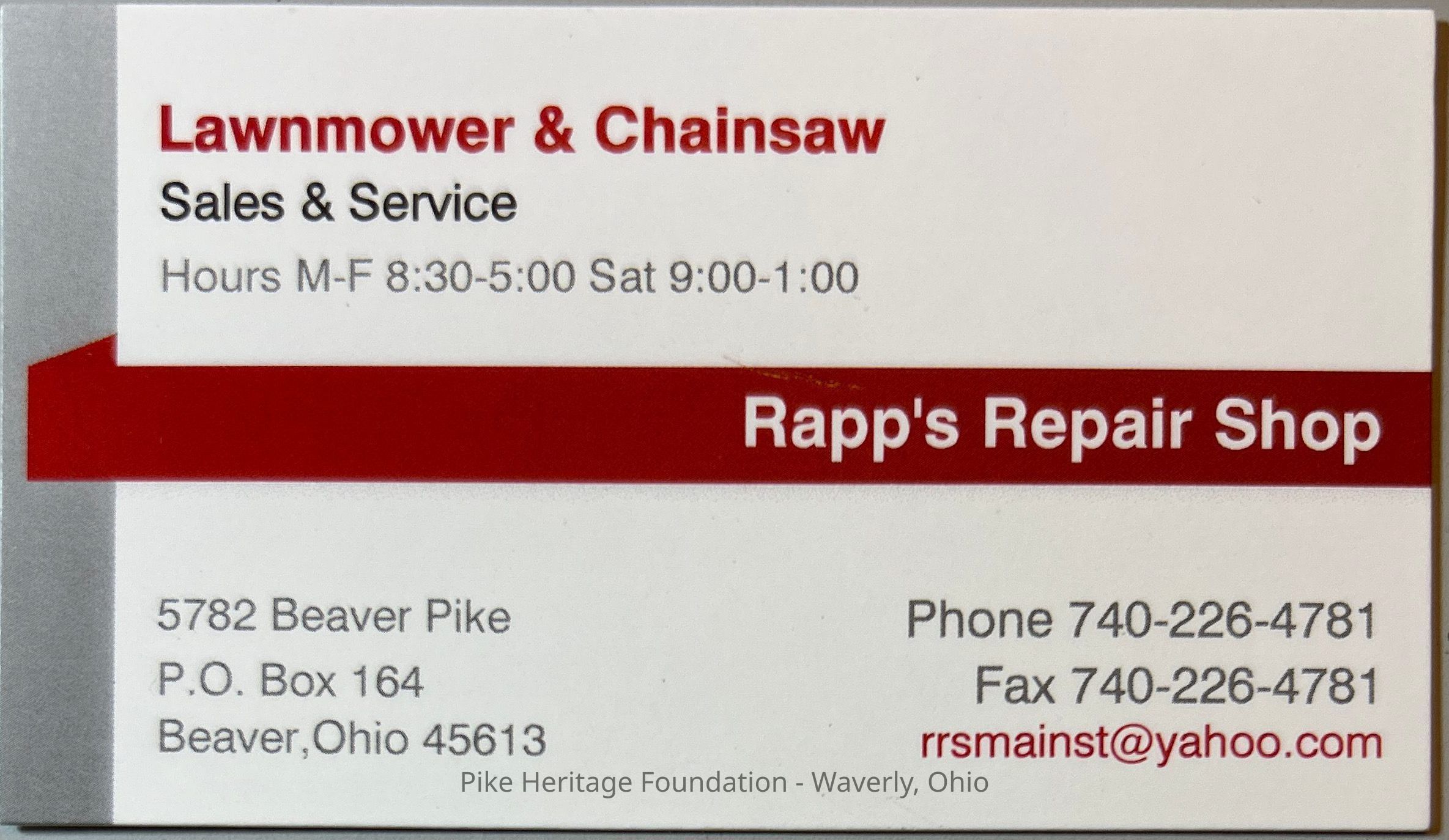 Rapp’s Repair Shop Business Card