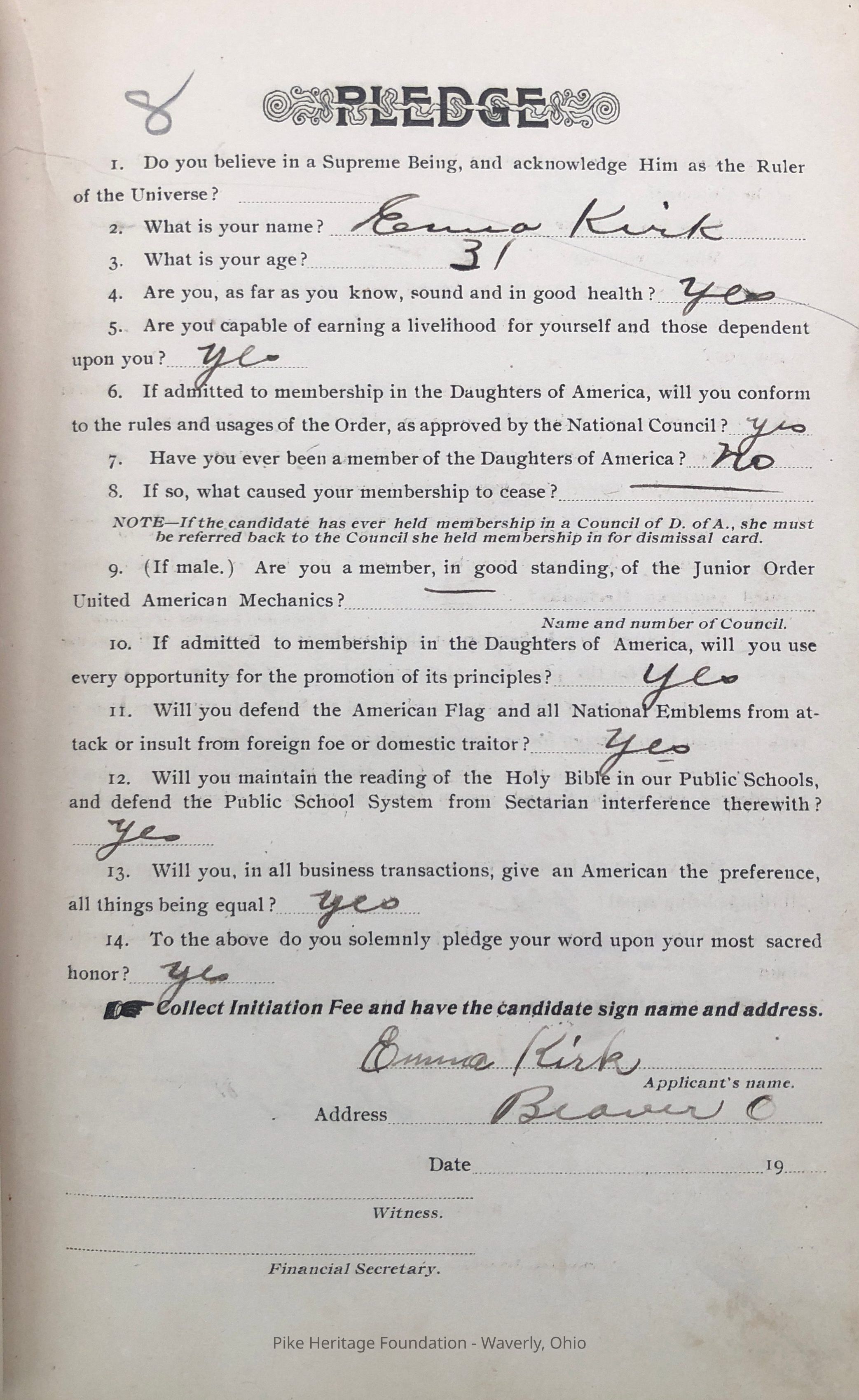 Daughters of America Pledge Book - Stockdale, OhioEntry/Object ID
