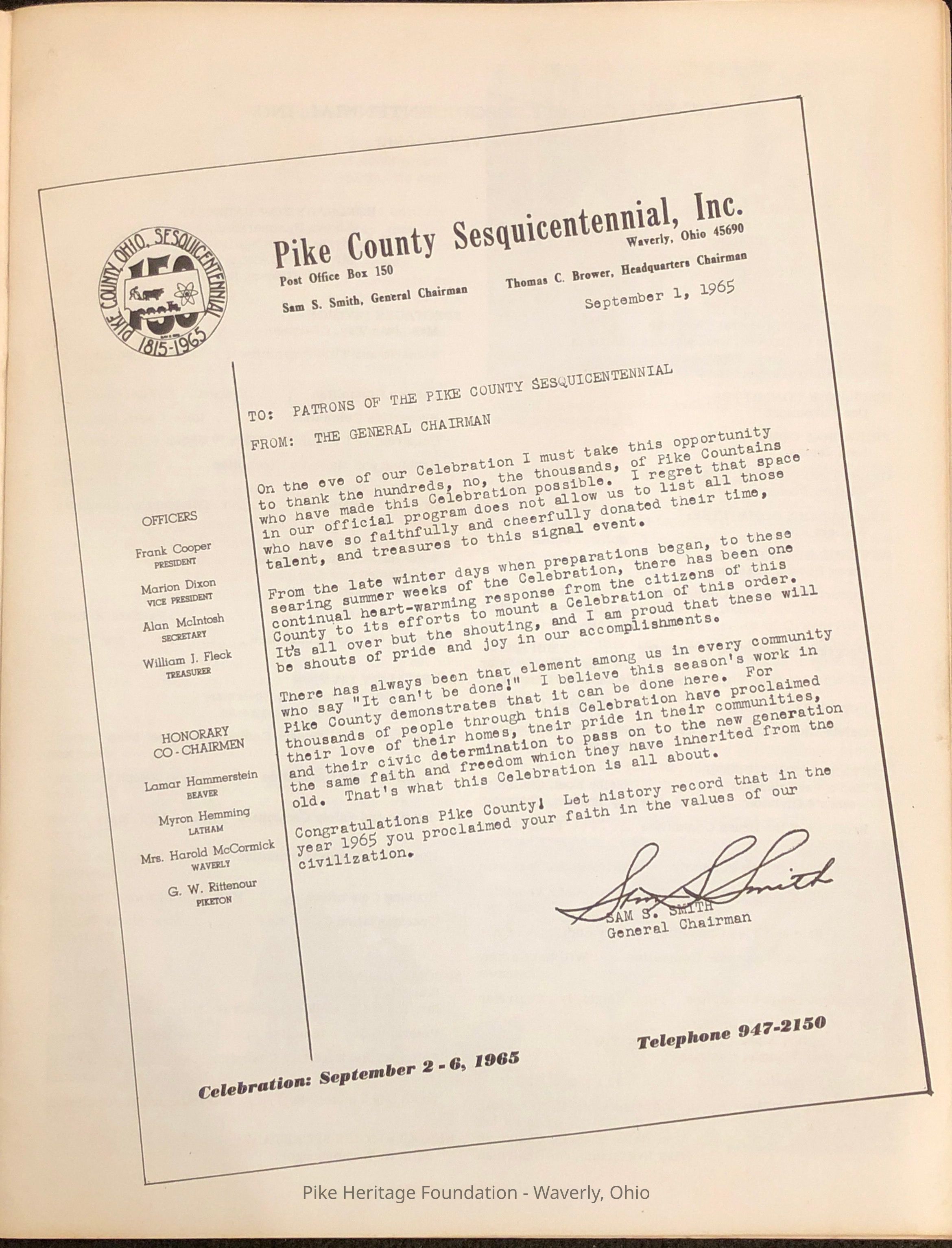 Pike County, Ohio Sesquicentennial BookletEntry/Object ID