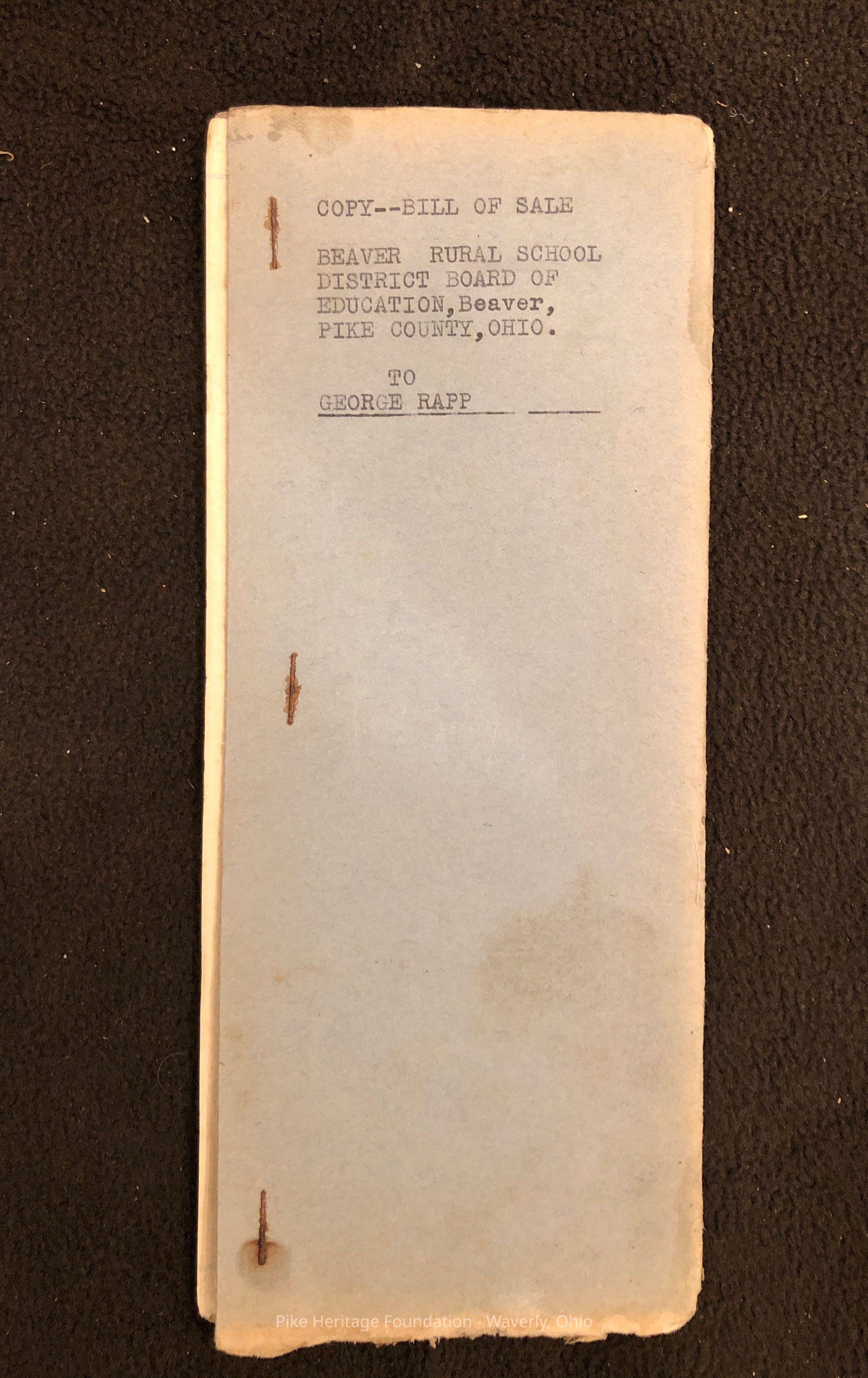 Bill of sale from Beaver Local Schools to George Rapp for the Rapp School House located in Beaver Township in Pike County, Ohio.Collection