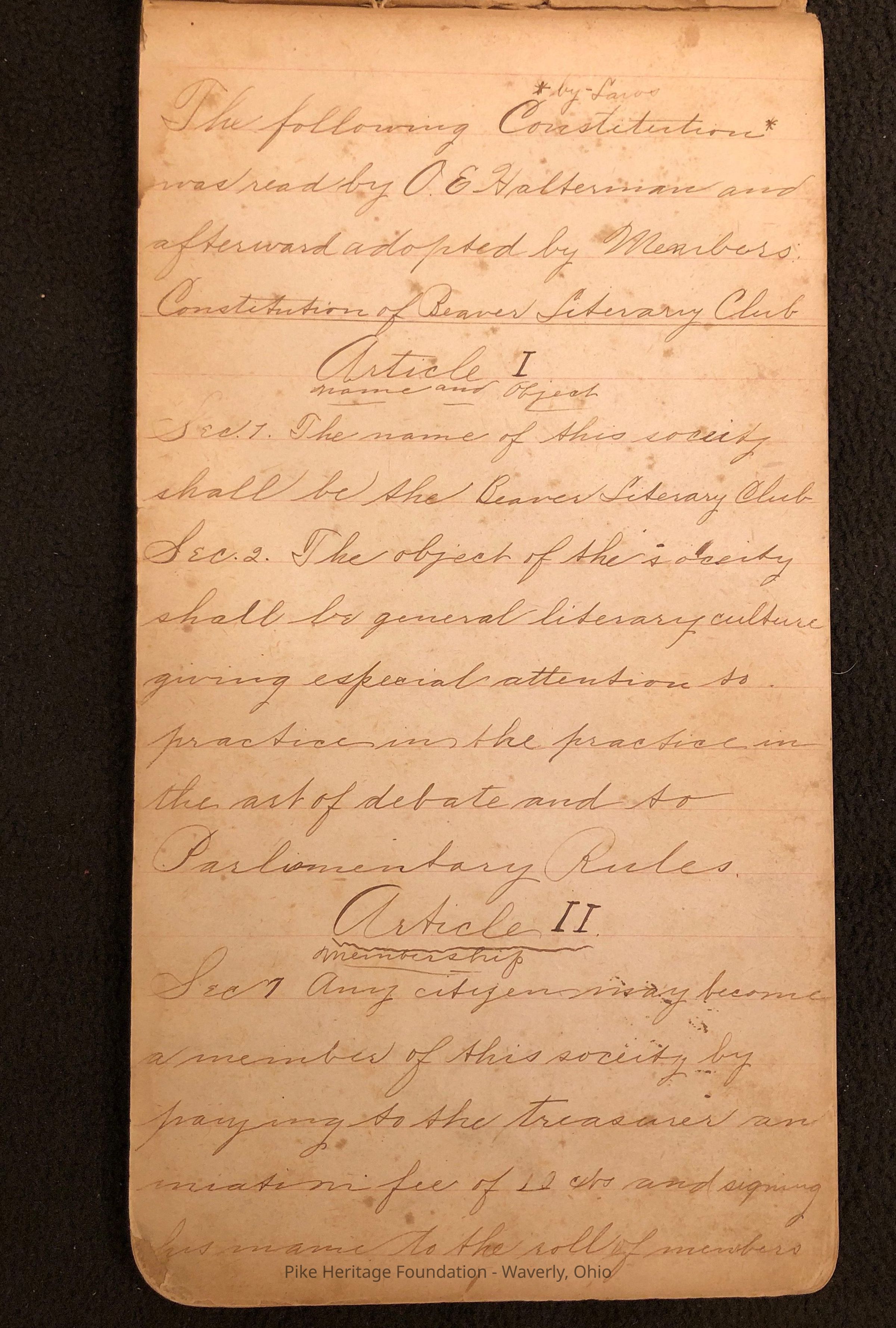 Beaver Literary Club By-laws and Minutes Book - 1893Entry/Object ID