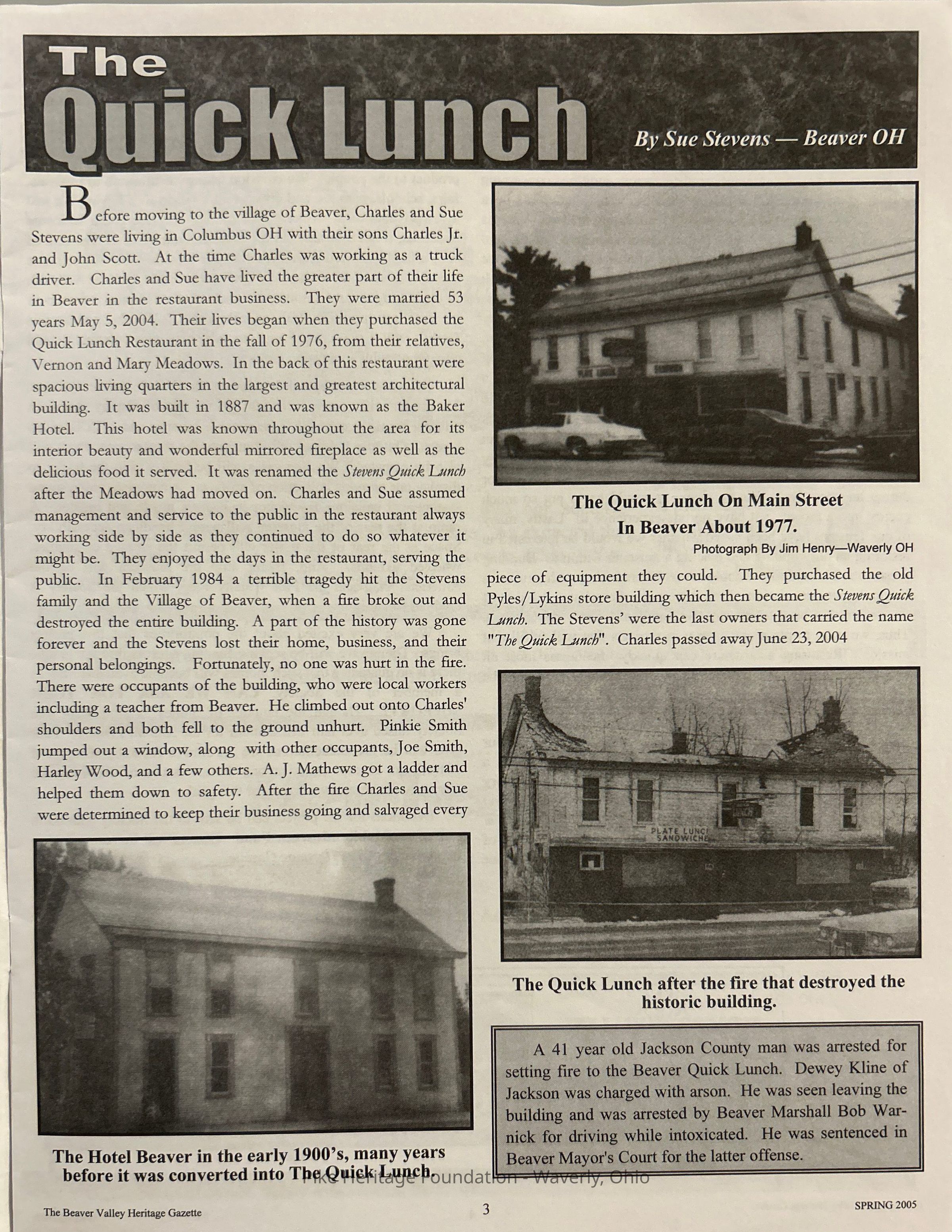 The Beaver Valley Heritage Gazette - Spring 2005Entry/Object ID
