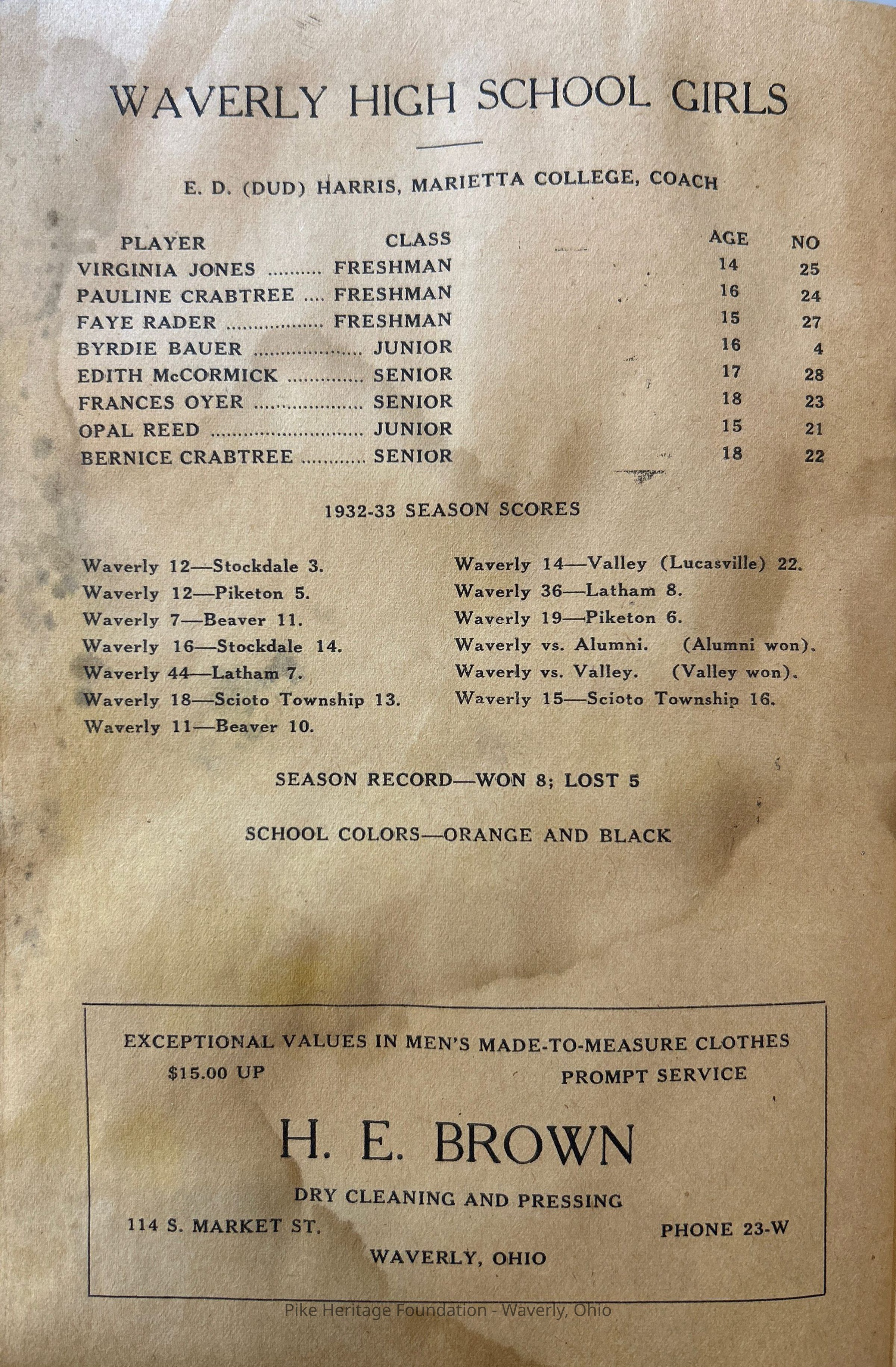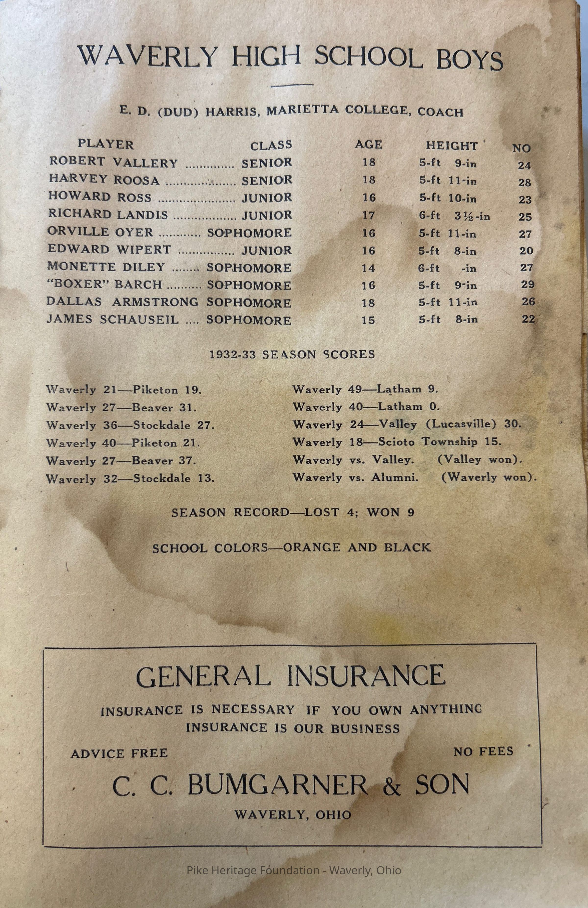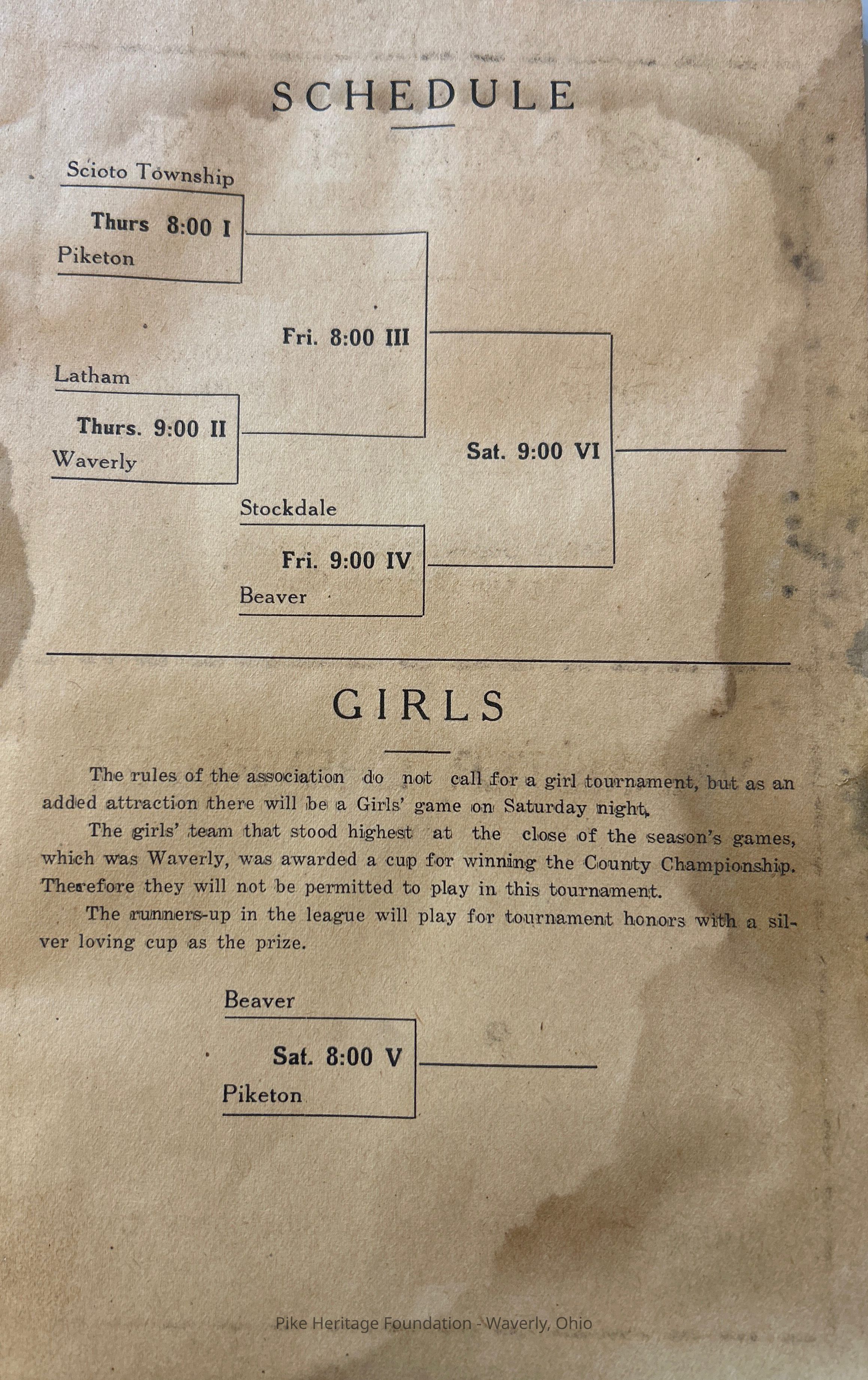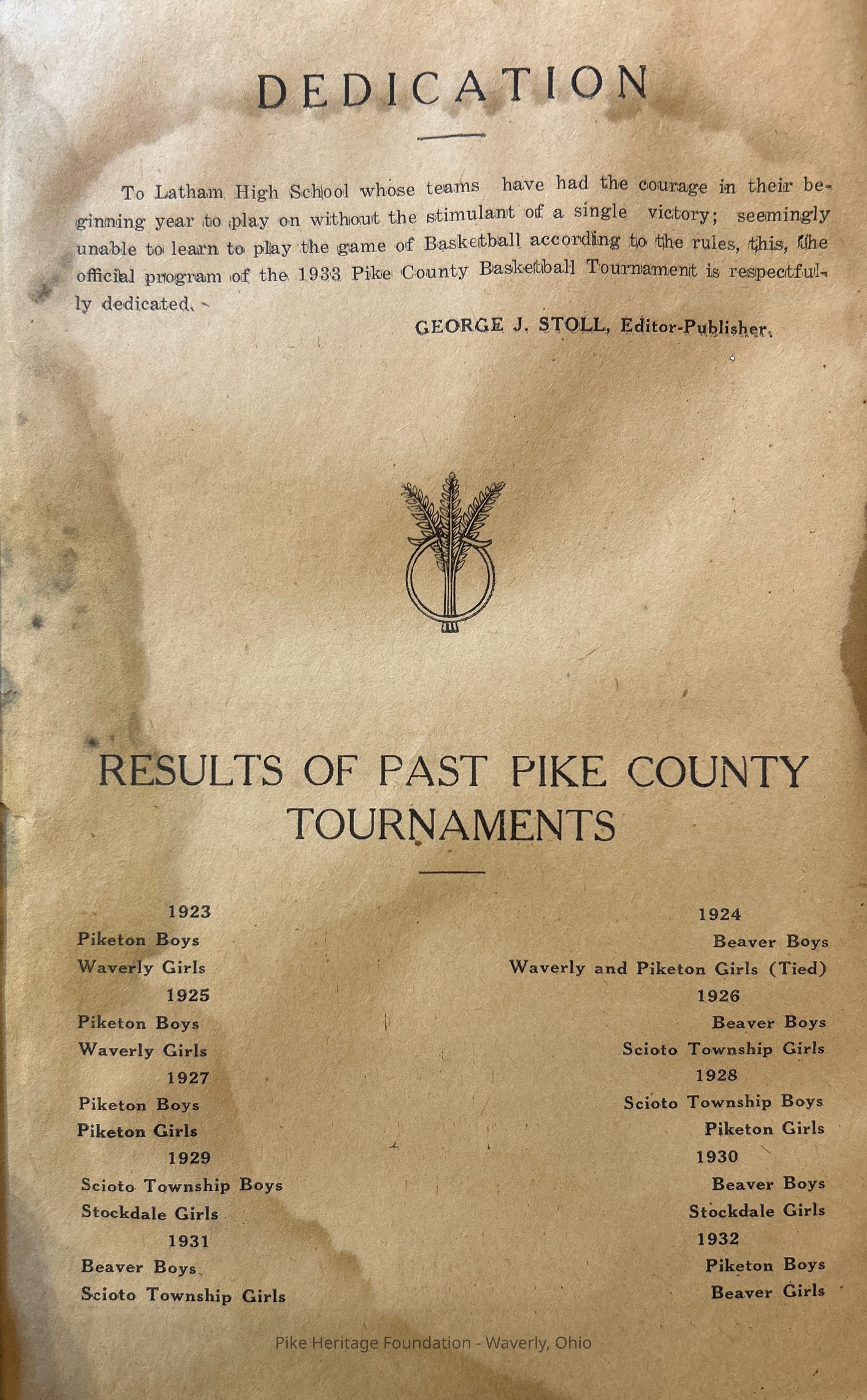 1933 Pike County Basketball Tournament ProgramEntry/Object ID
