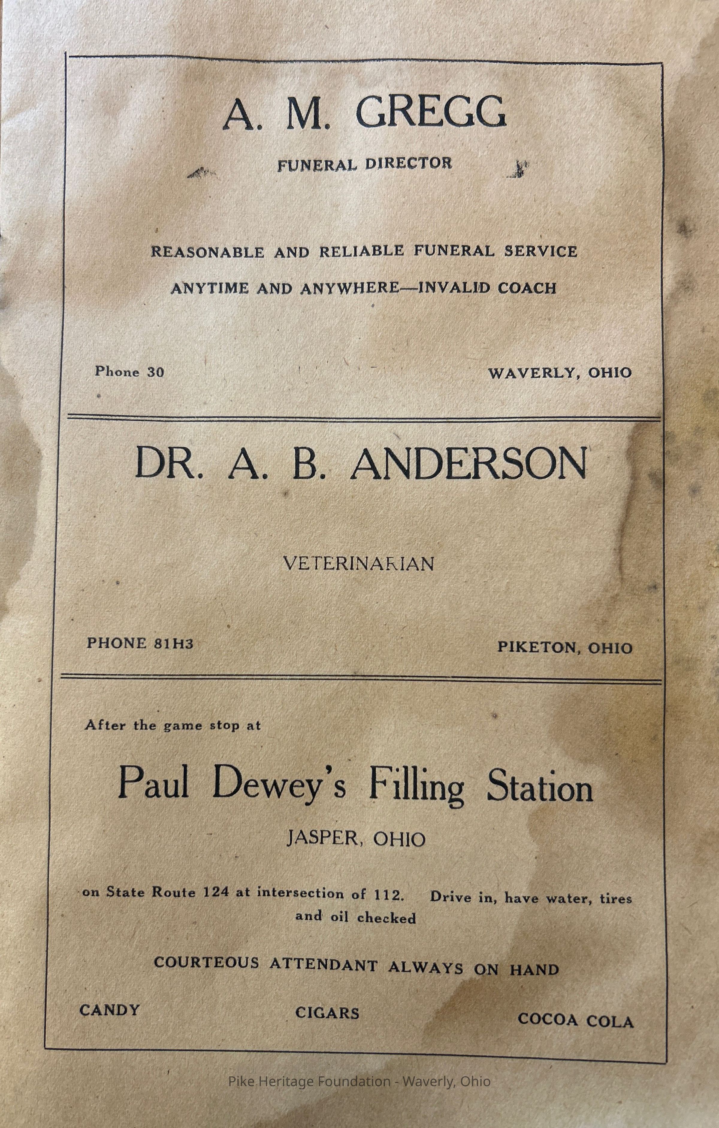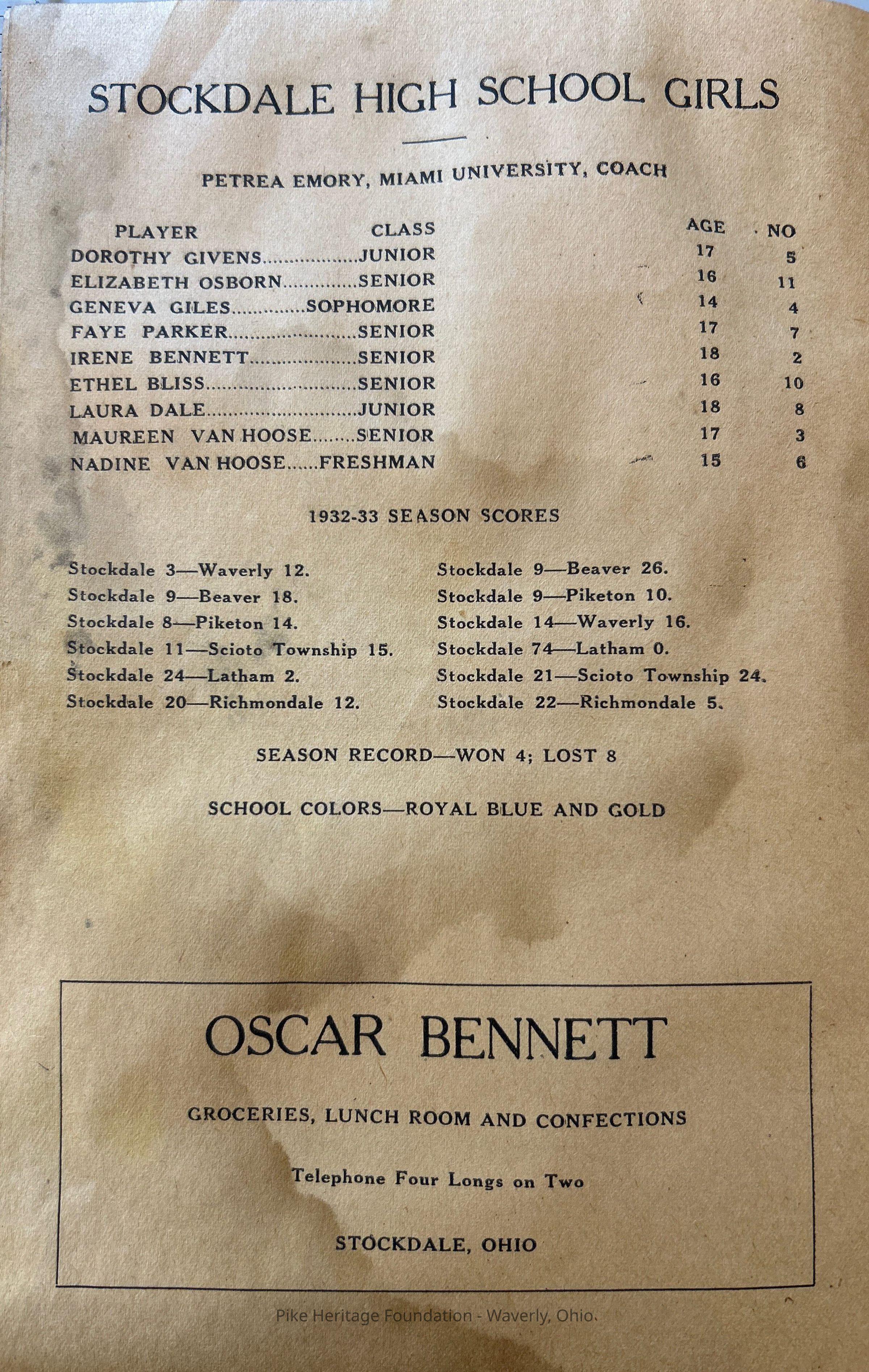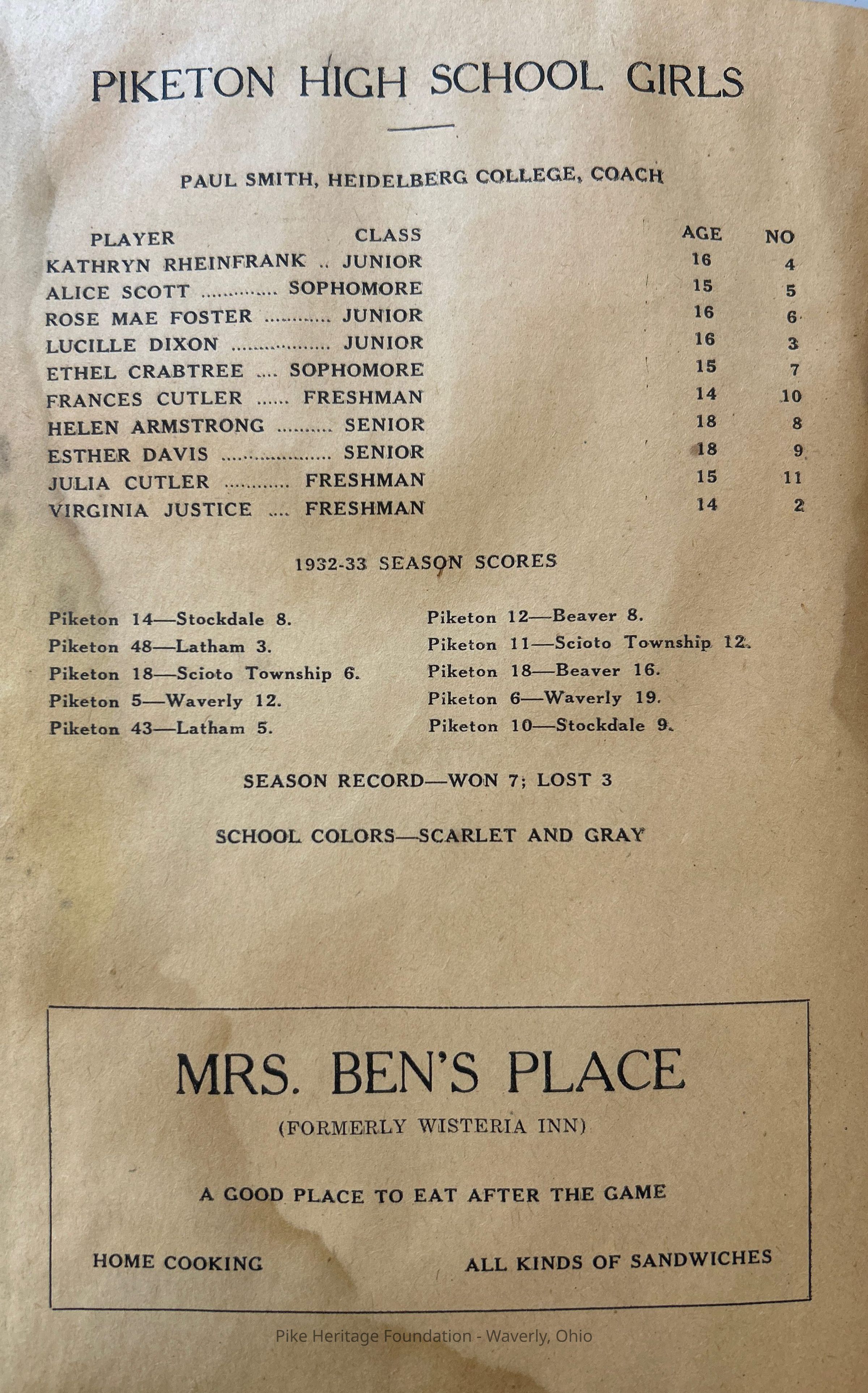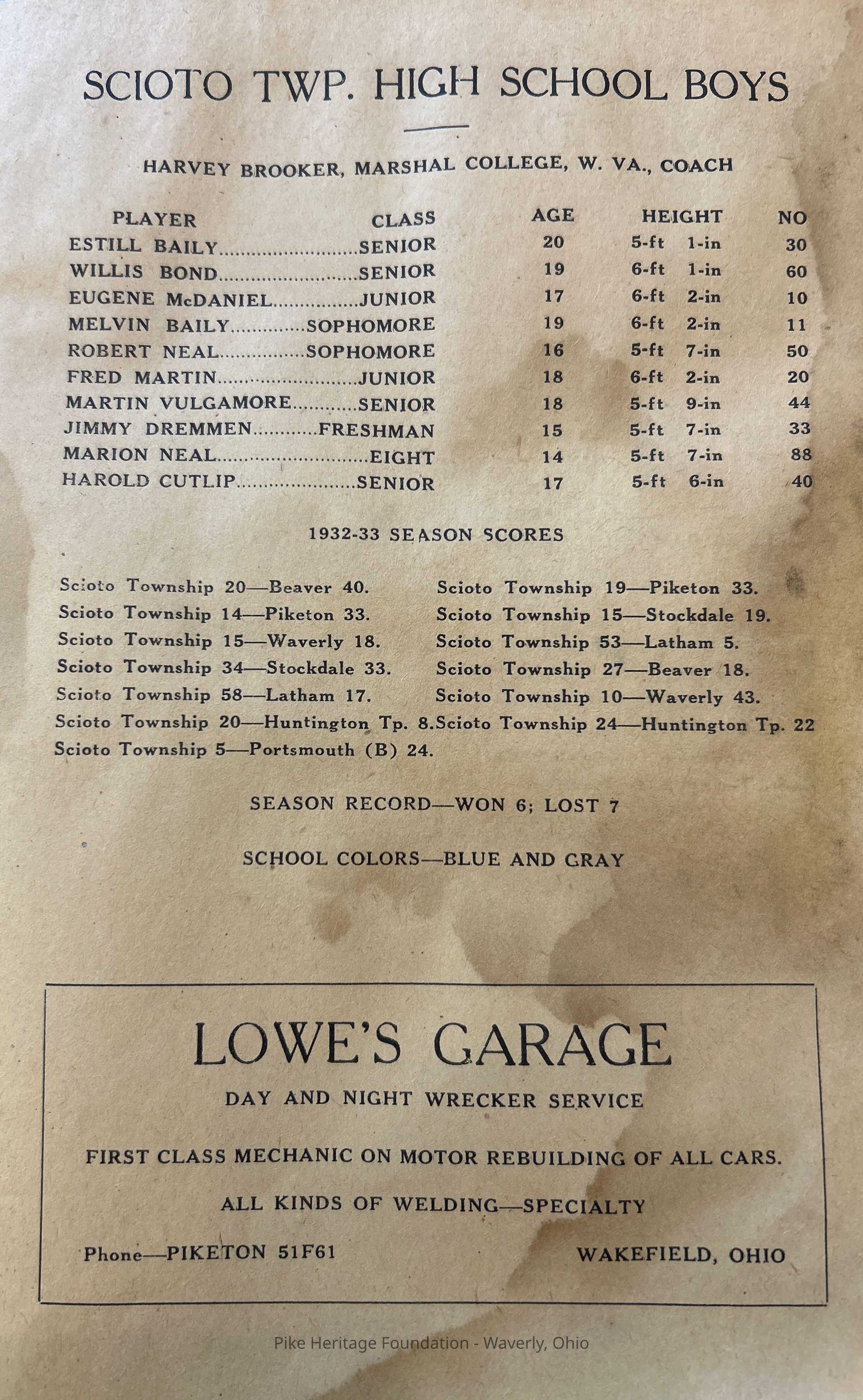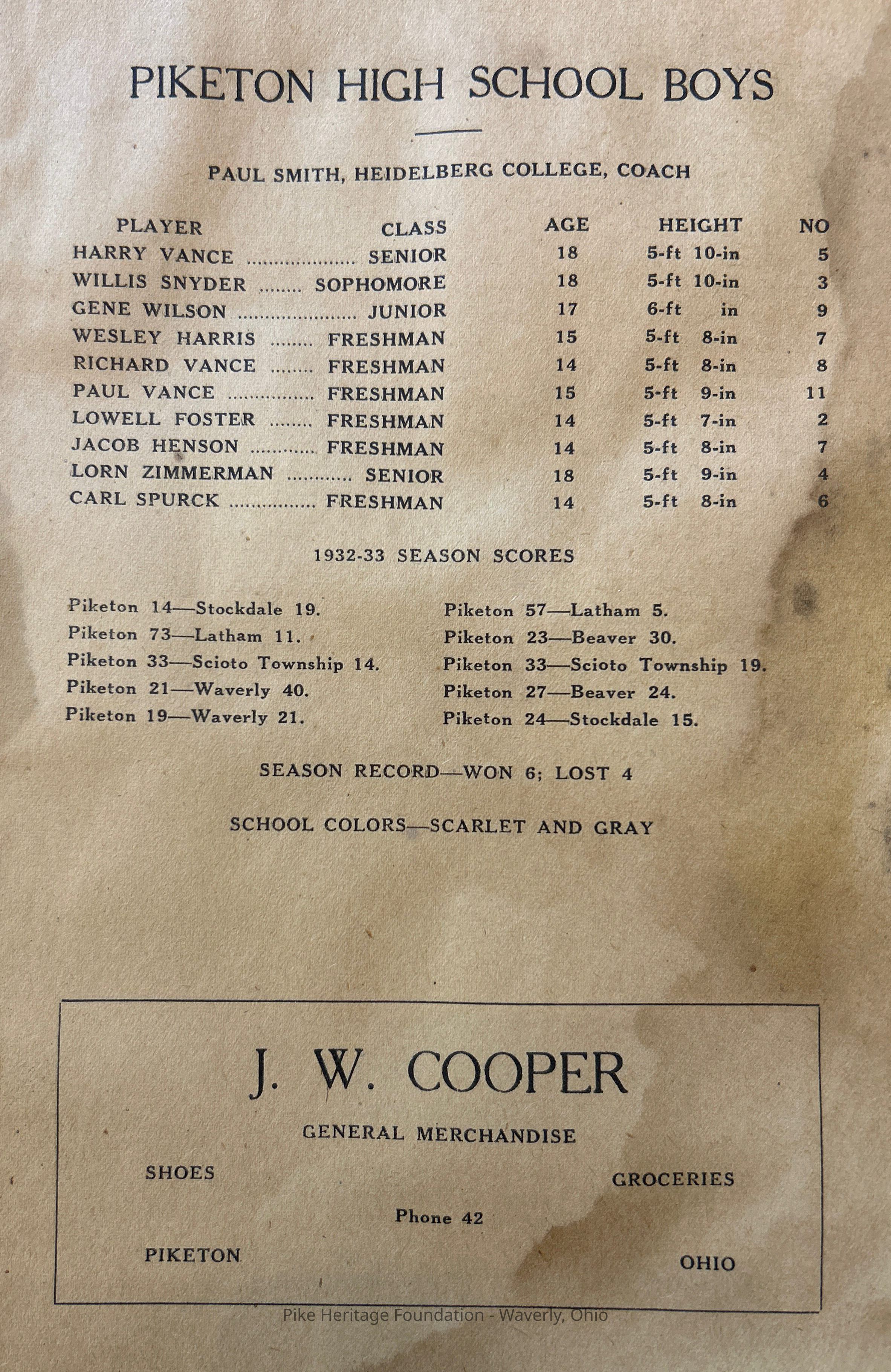 1933 Pike County Basketball Tournament ProgramEntry/Object ID