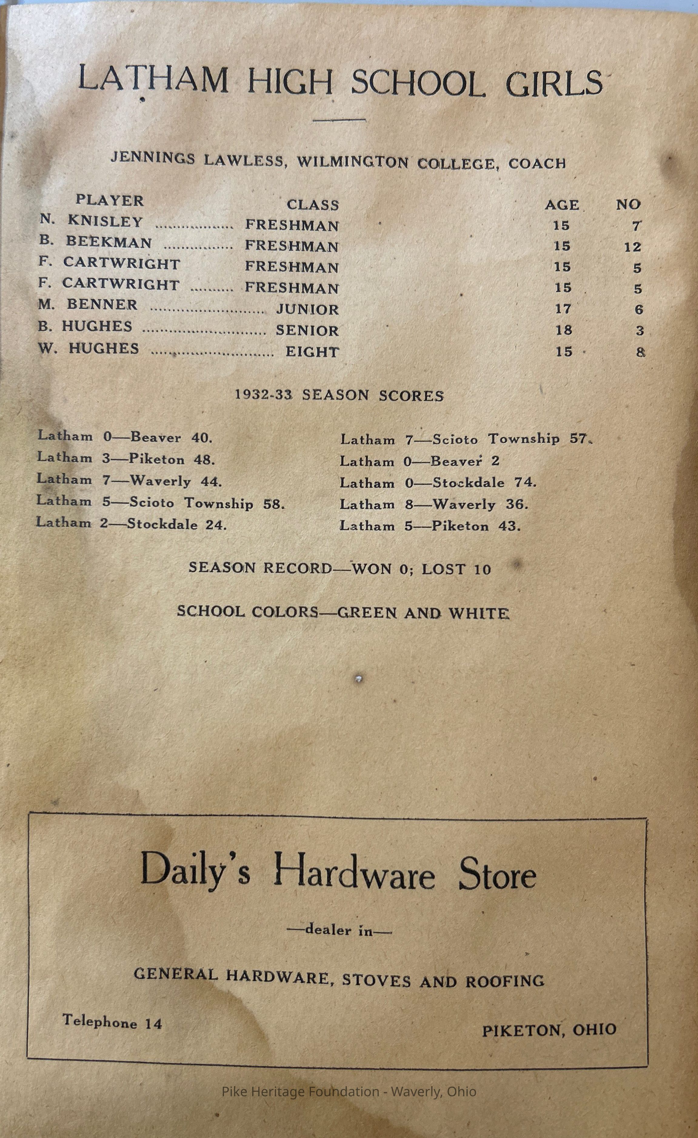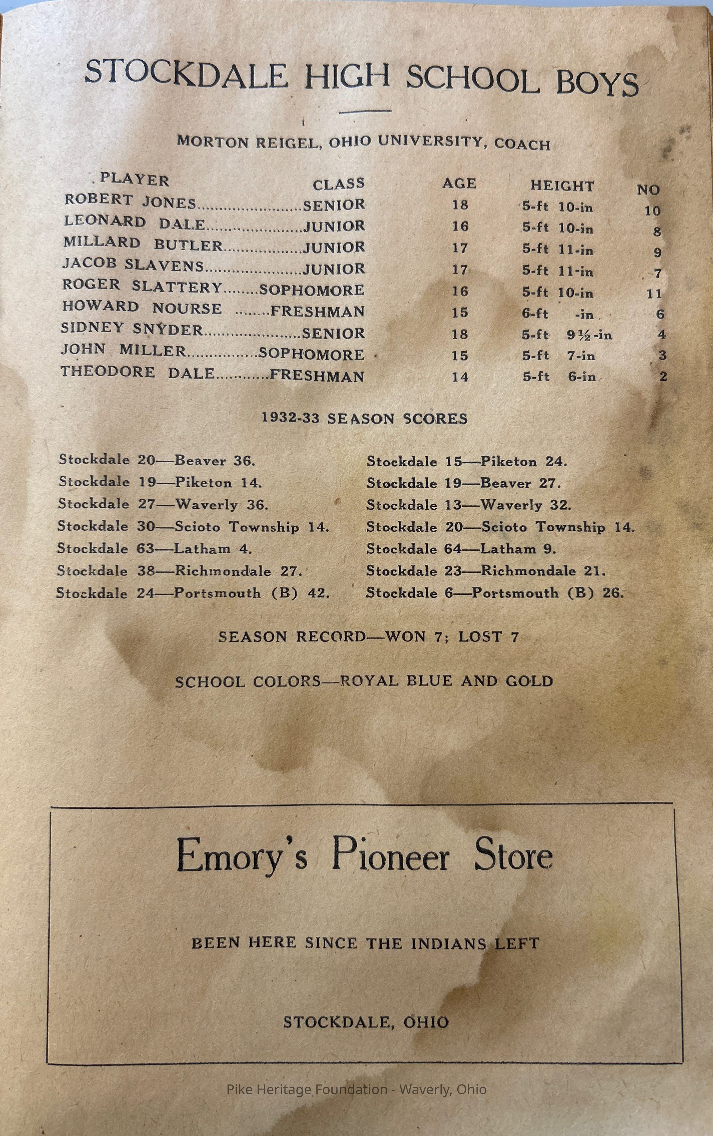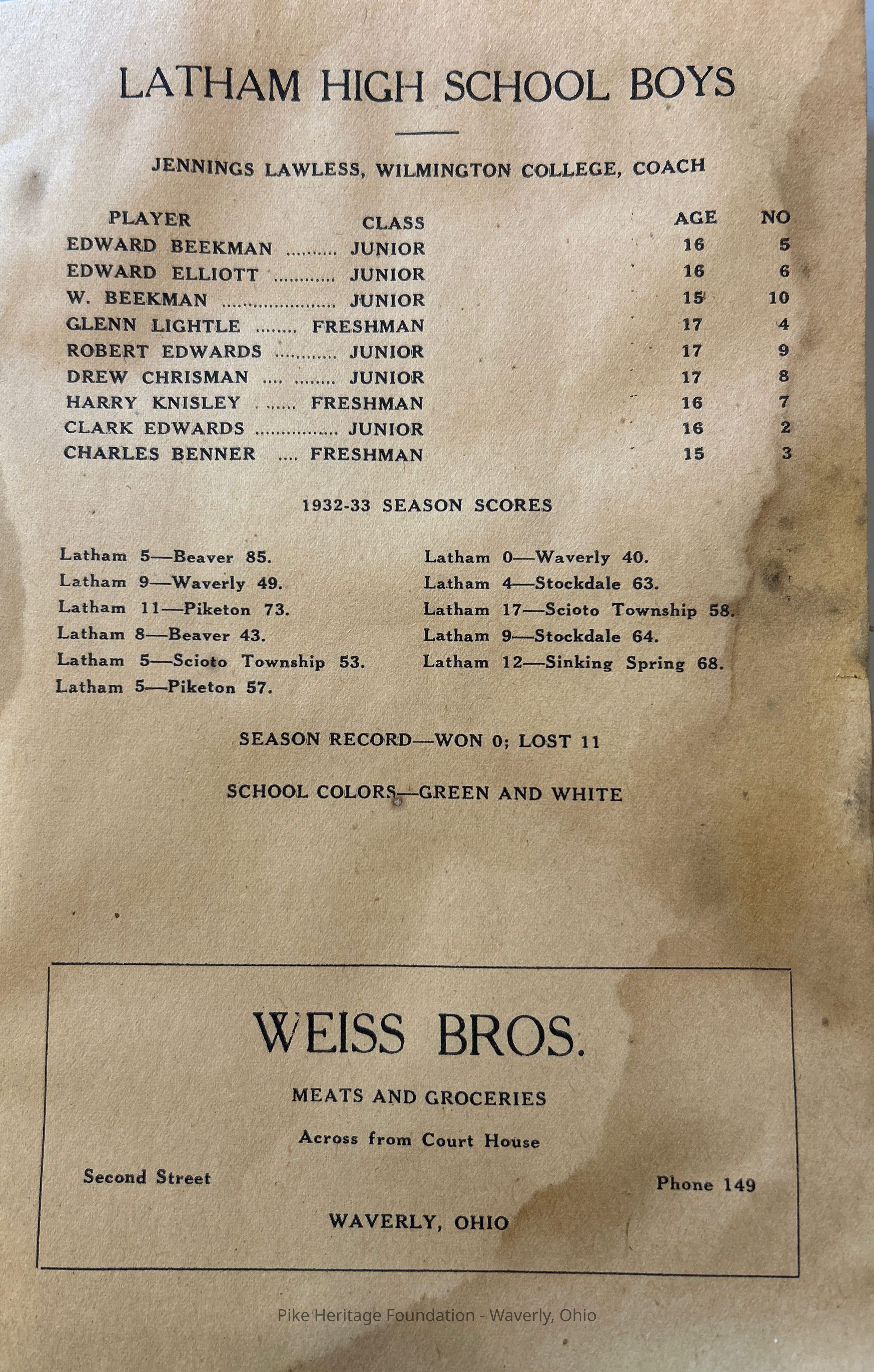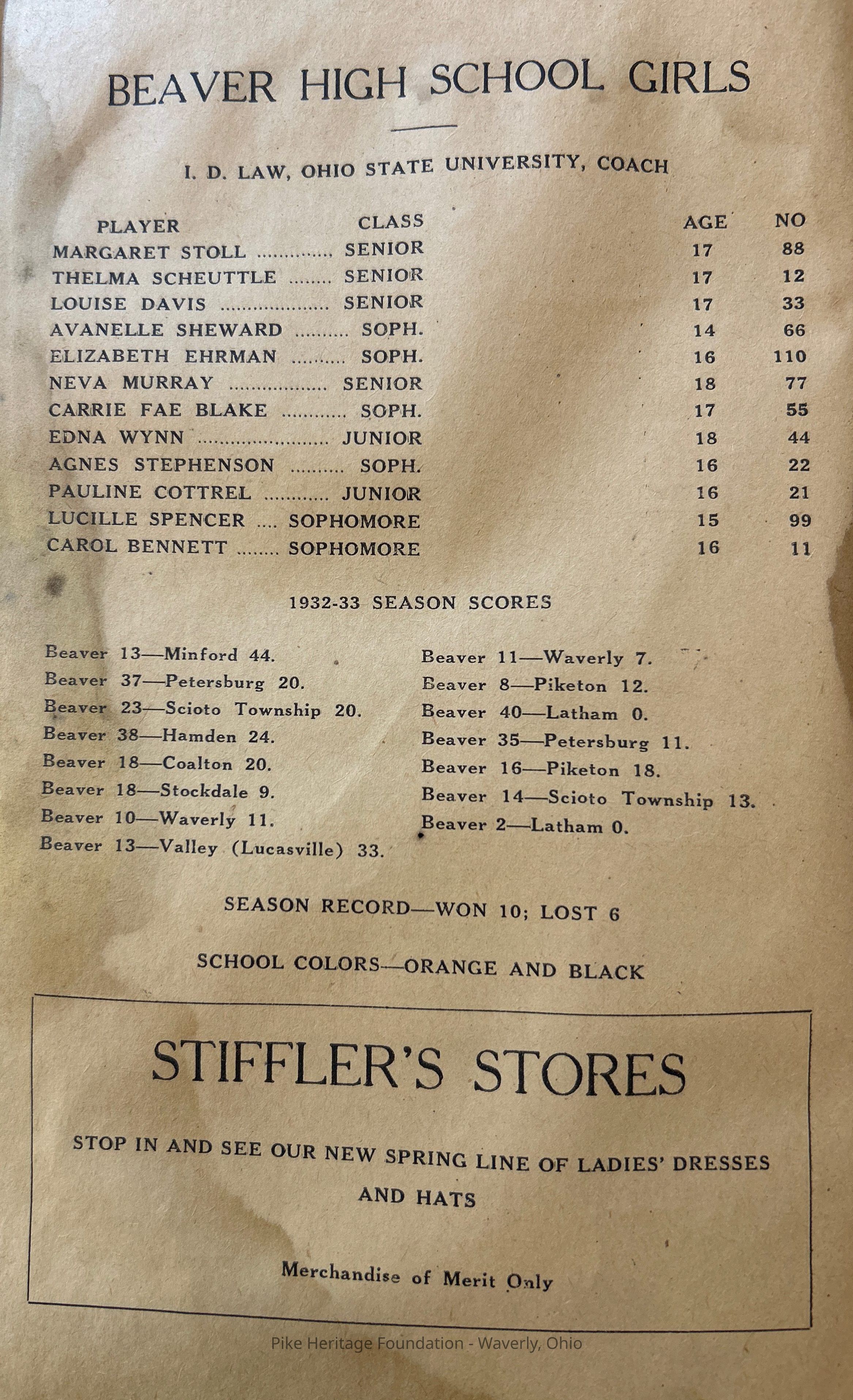1933 Pike County Basketball Tournament ProgramEntry/Object ID