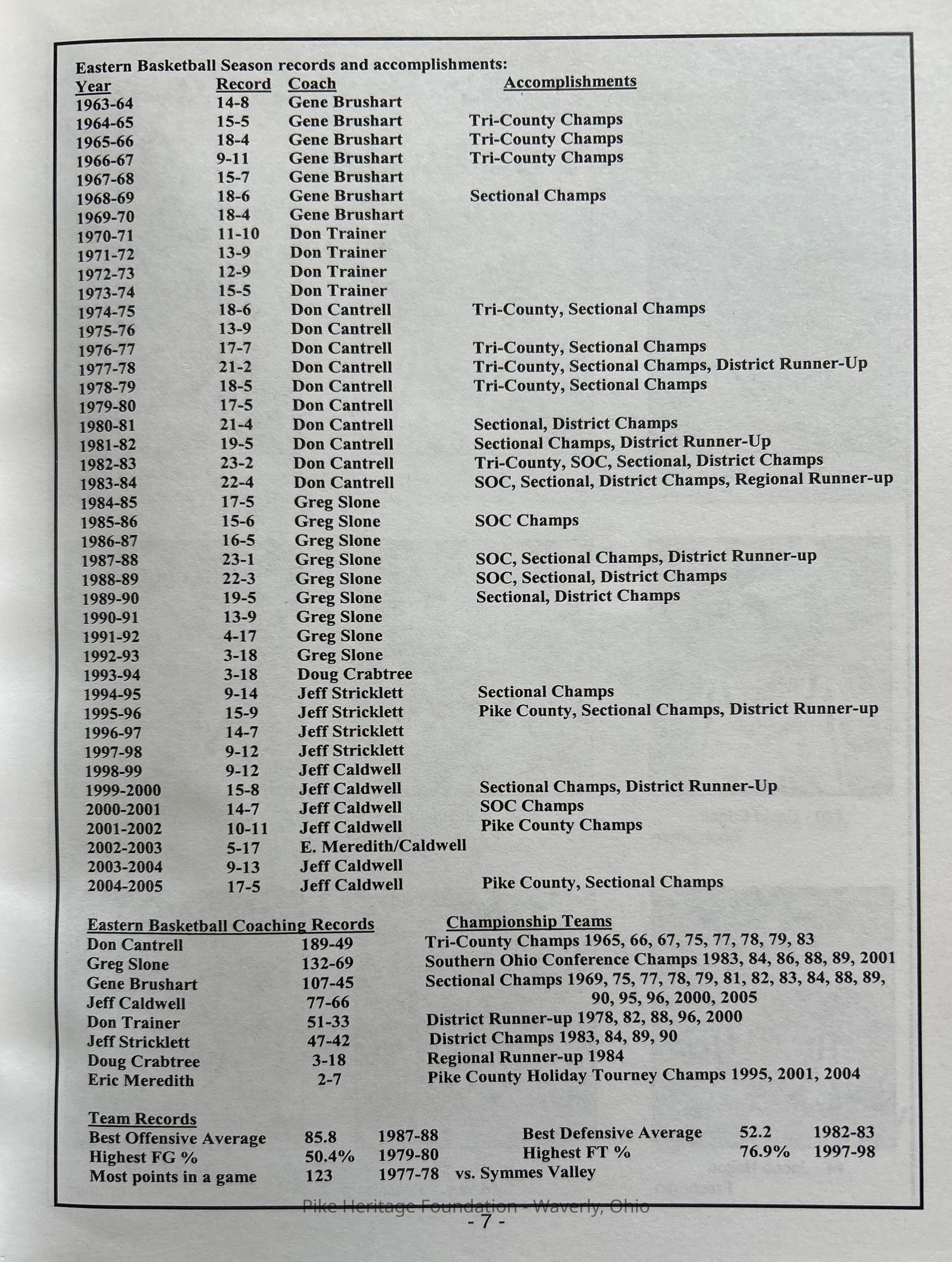 Eastern High School Sports ProgramEntry/Object ID