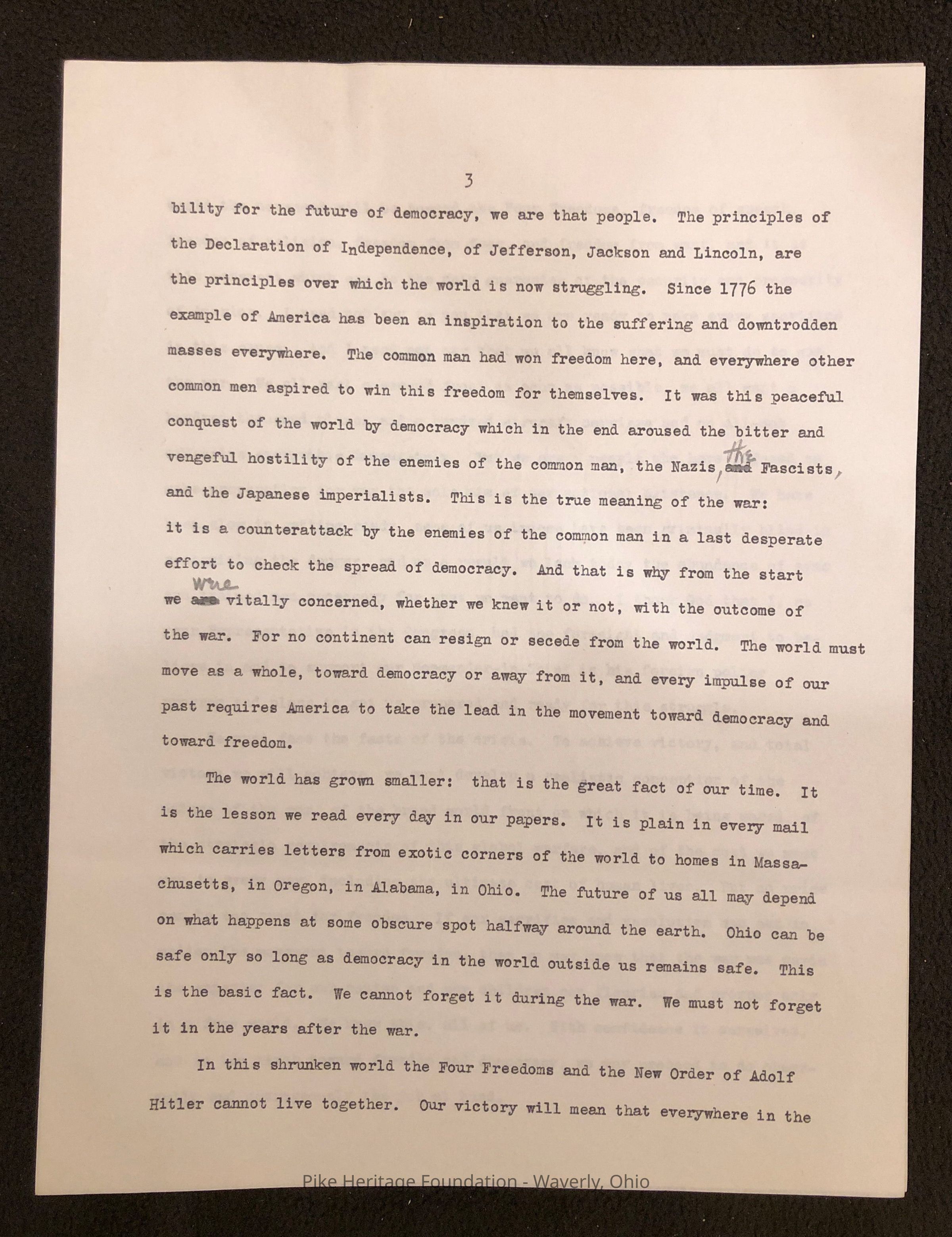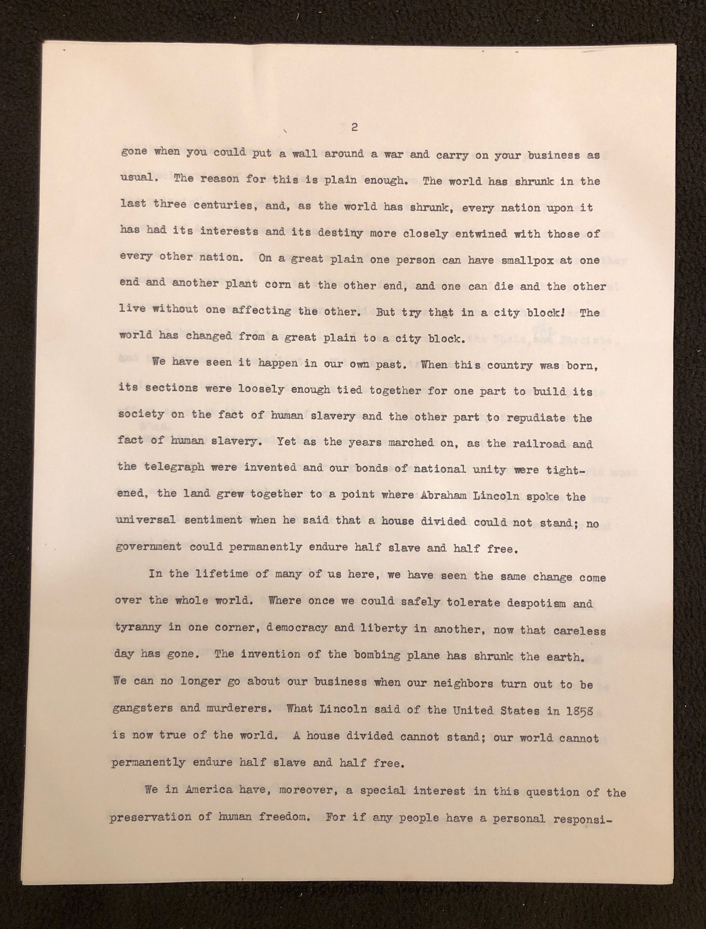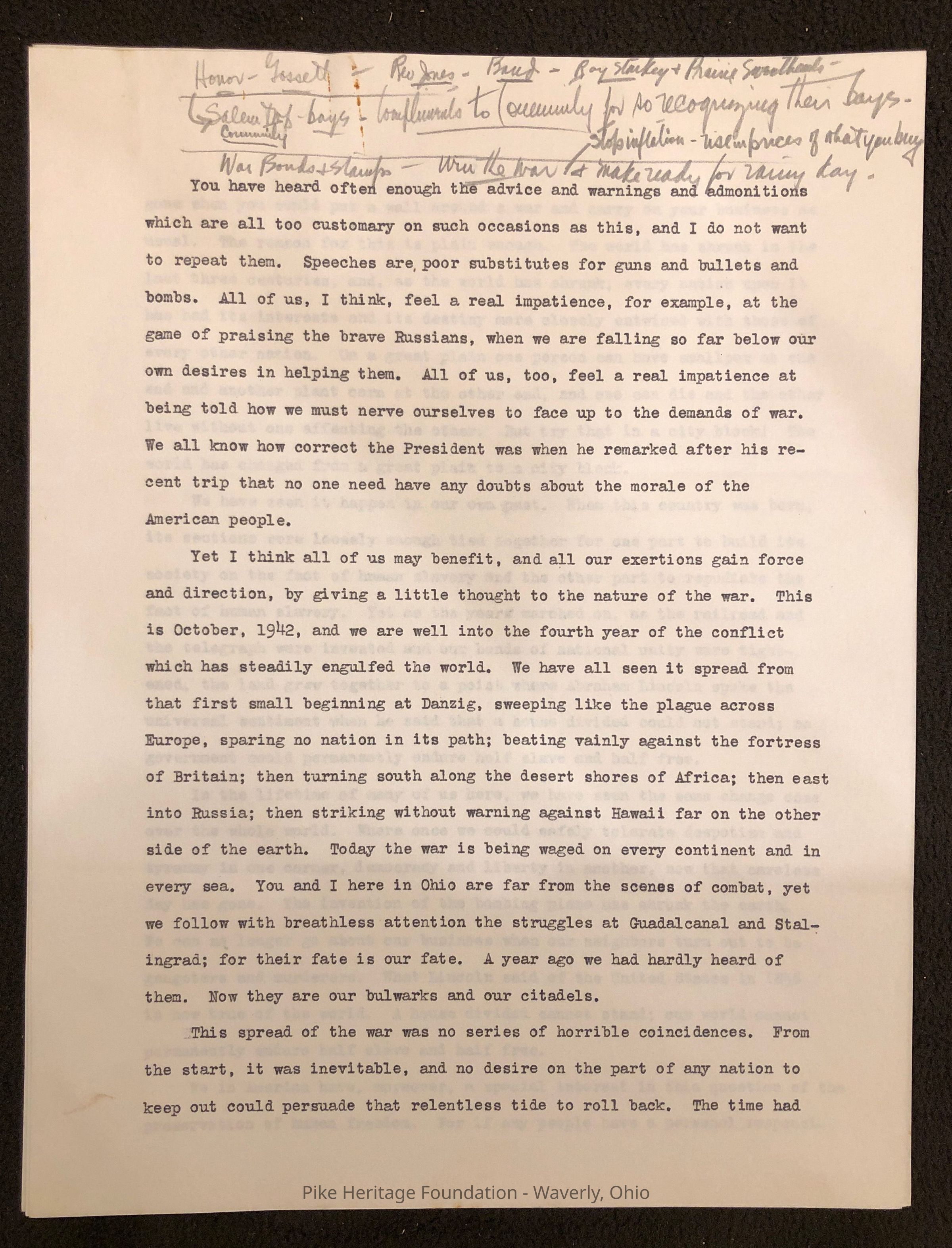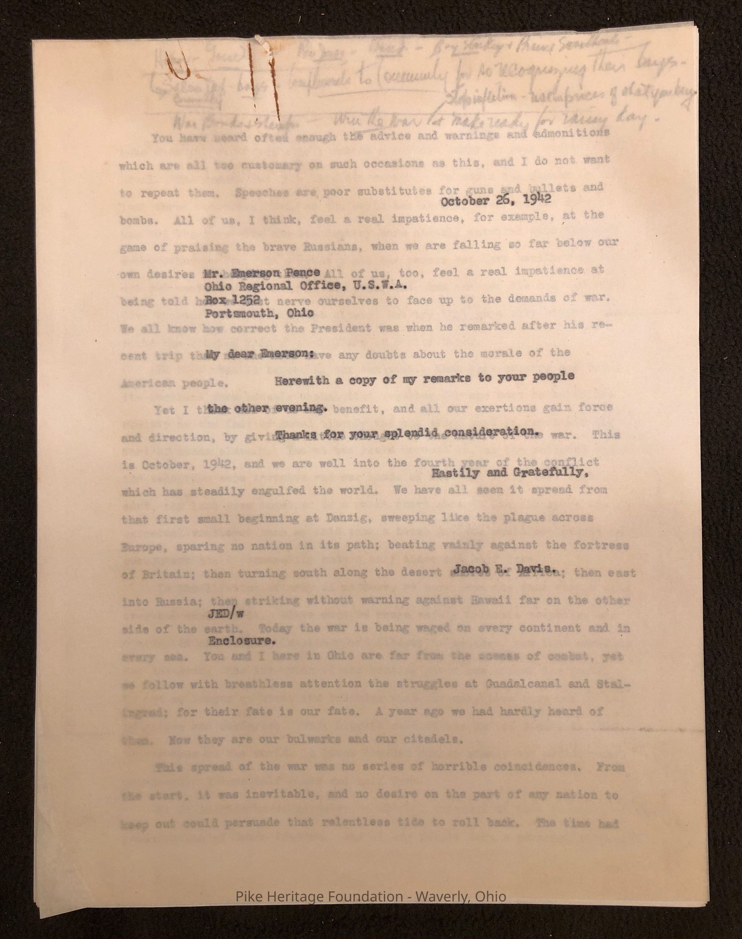 Transcribed speech given by Congressman Jacob E. Davis to the U. S. W. A. In 1942.Collection