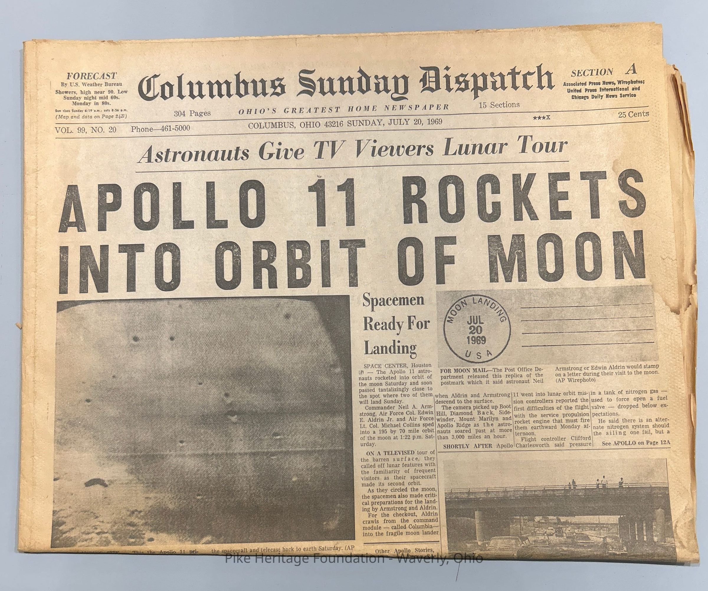July 20, 1969 issue of the Columbus Sunday Dispatch, announcing the launch of Apollo 11.Entry/Object ID
