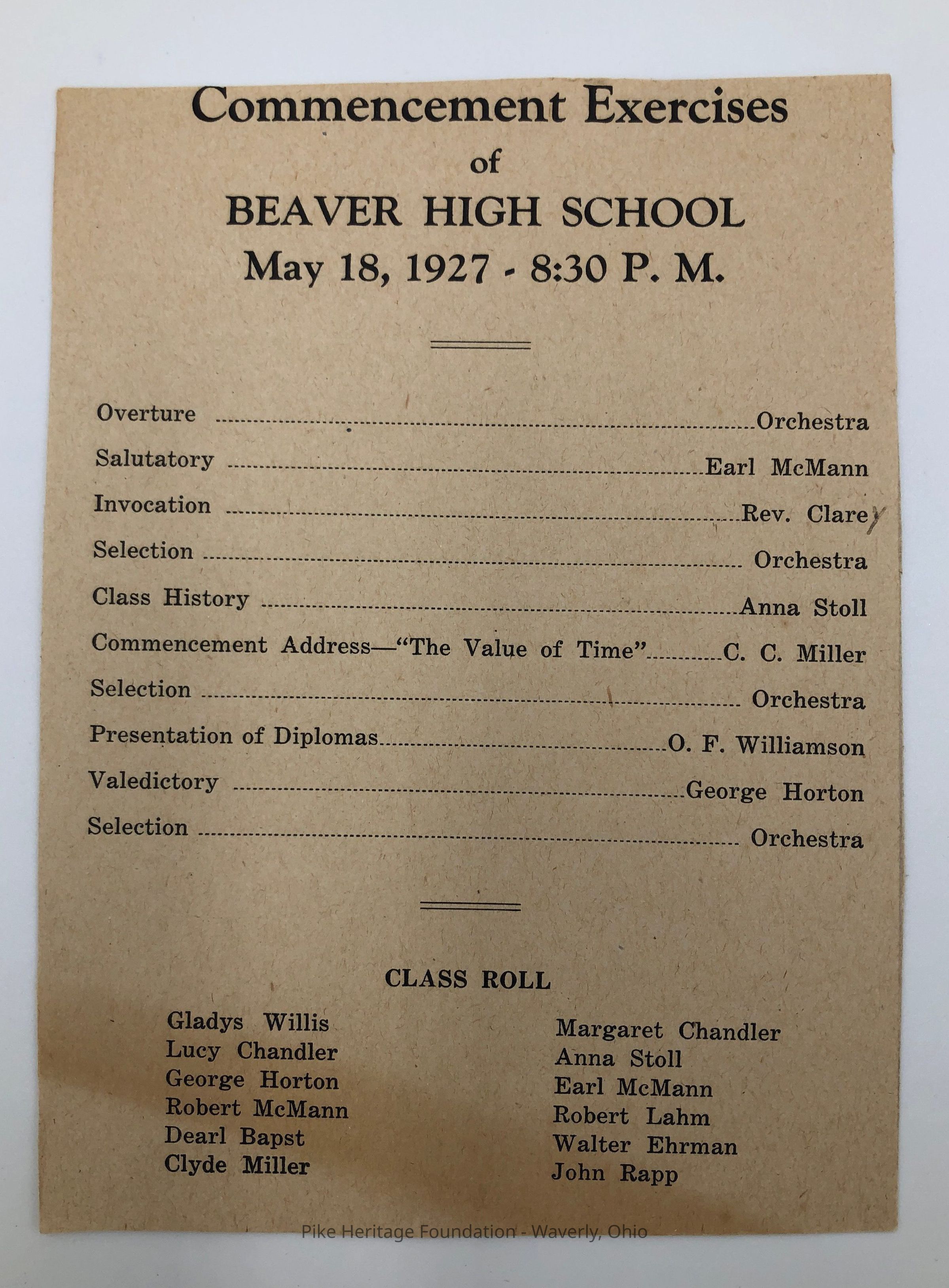 Beaver High School Class of 1927 collection including original commencement program and original photographs of each graduate.Collection