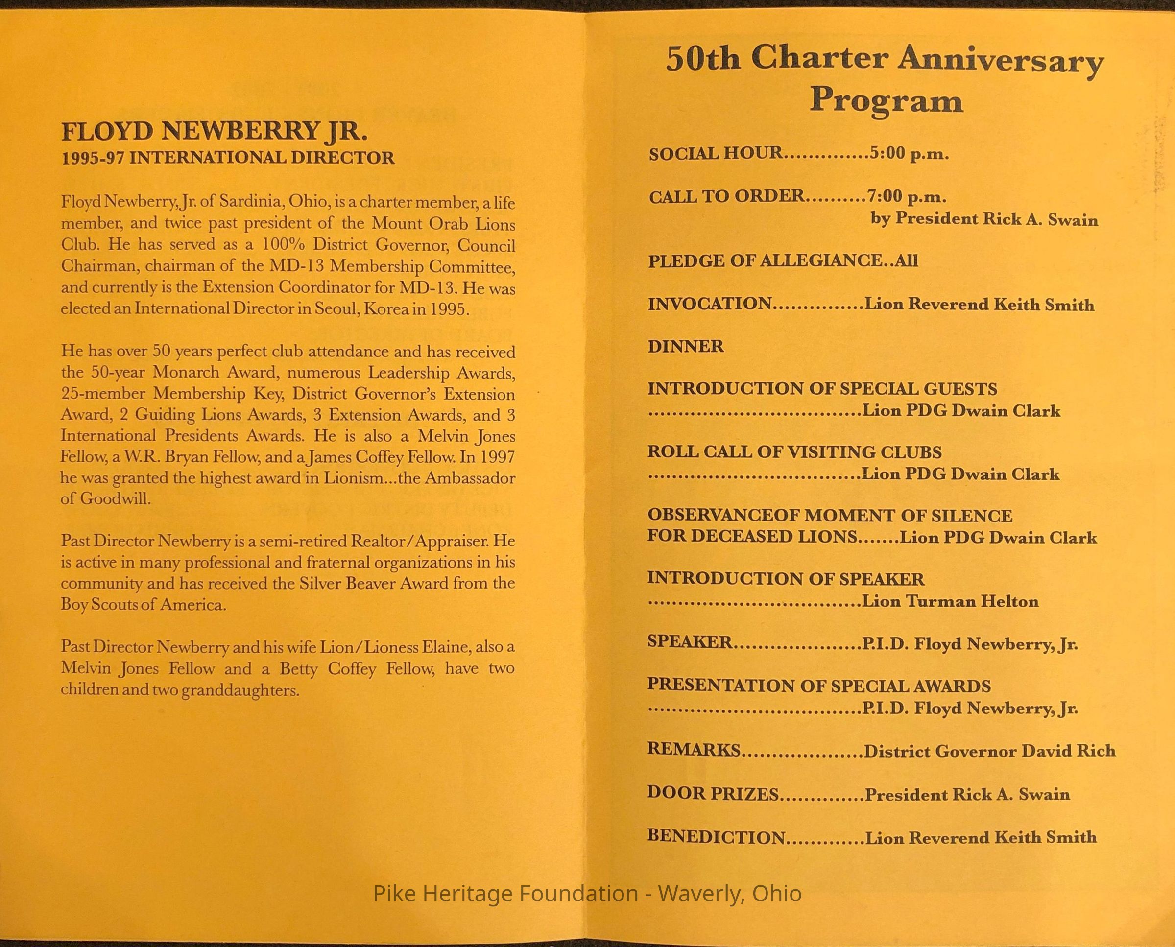 Beaver Lions Club 50th Anniversary ProgramEntry/Object ID