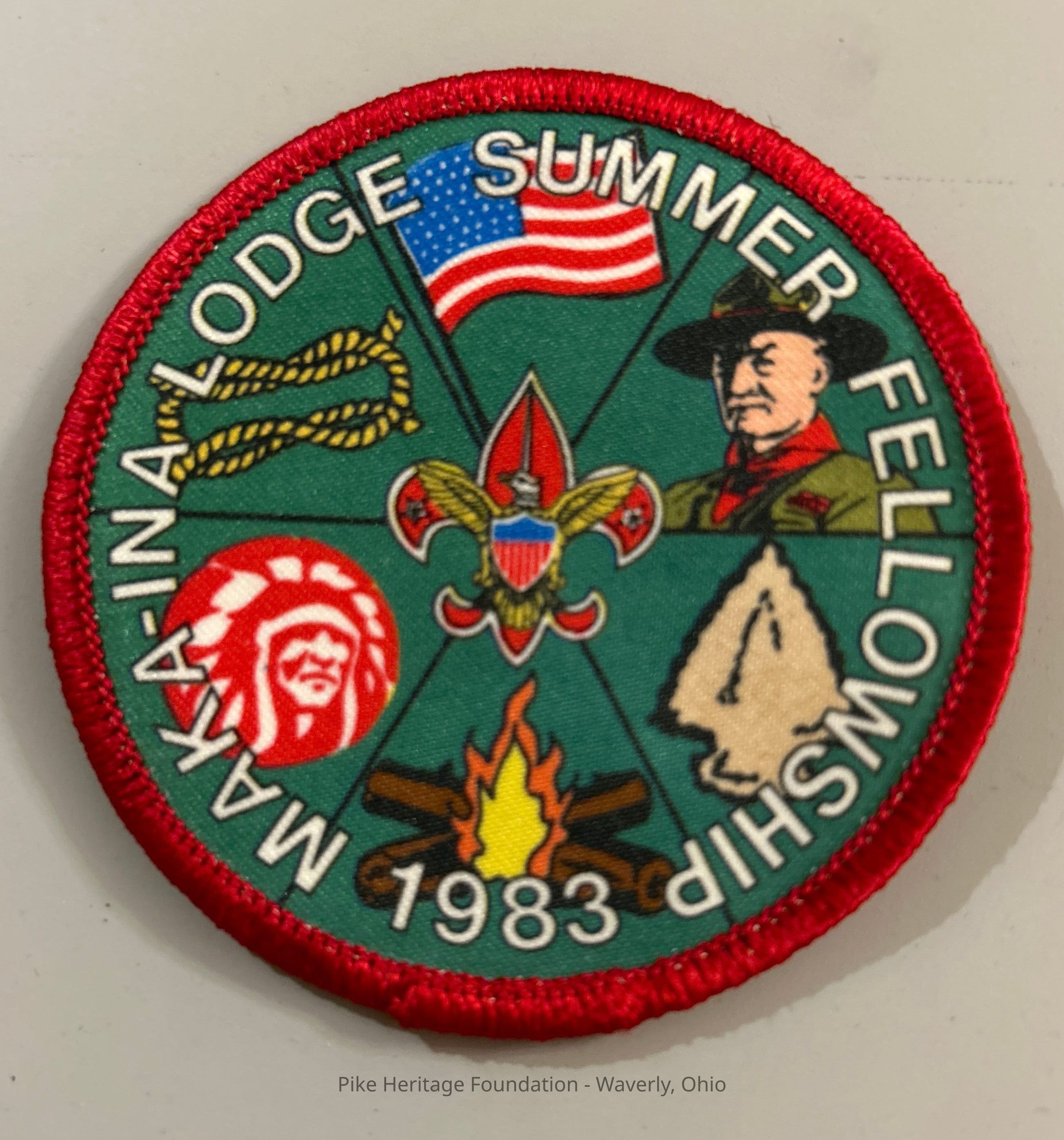 Boy Scouts of America patch awarded to scouts who are members of the Order of the Arrow and attended the Summer Fellowship in 1983 held at Chief Logan Reservation and Ray, Ohio.Collection
