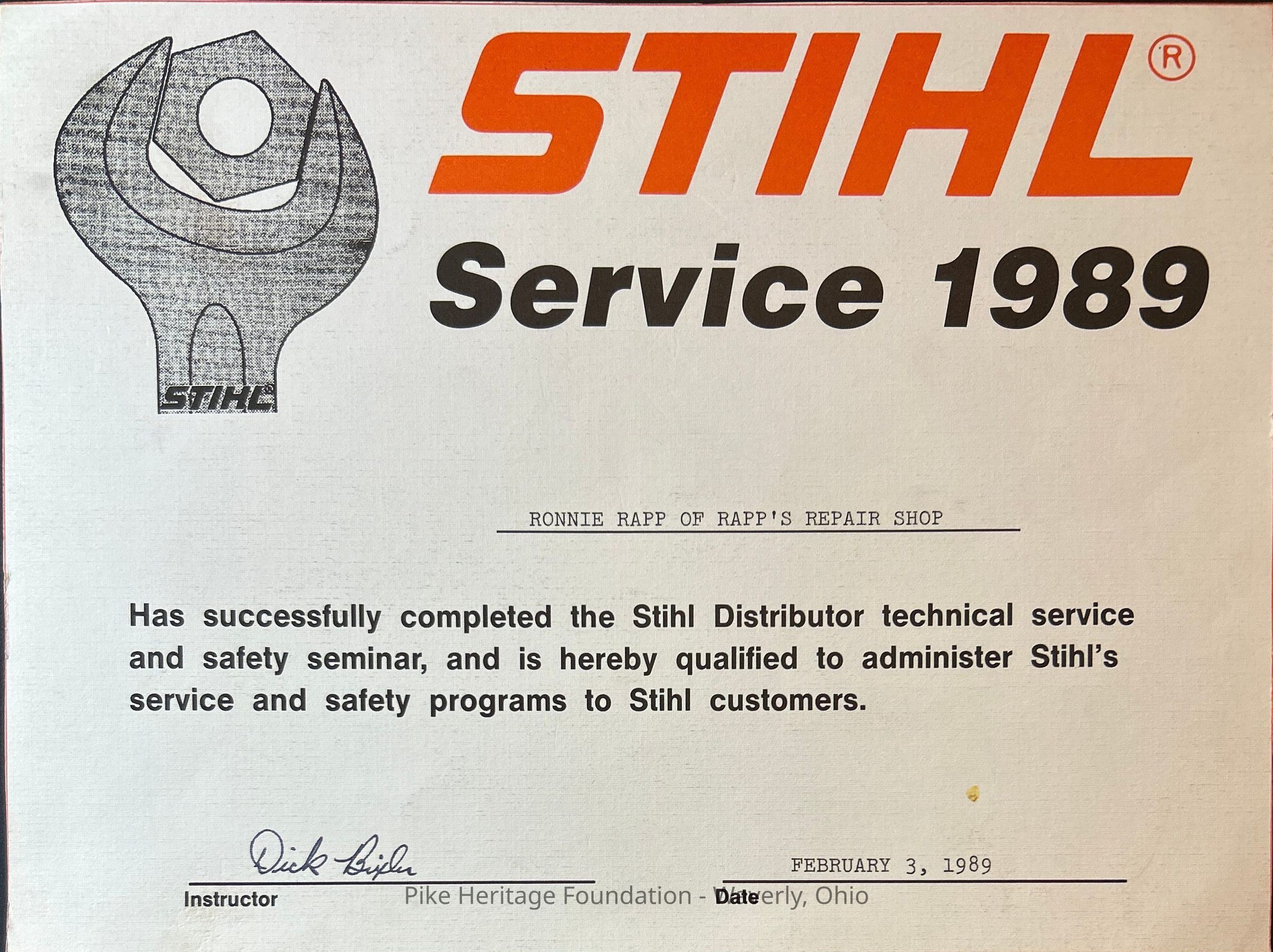 Rapp’s Repair Shop Certificate