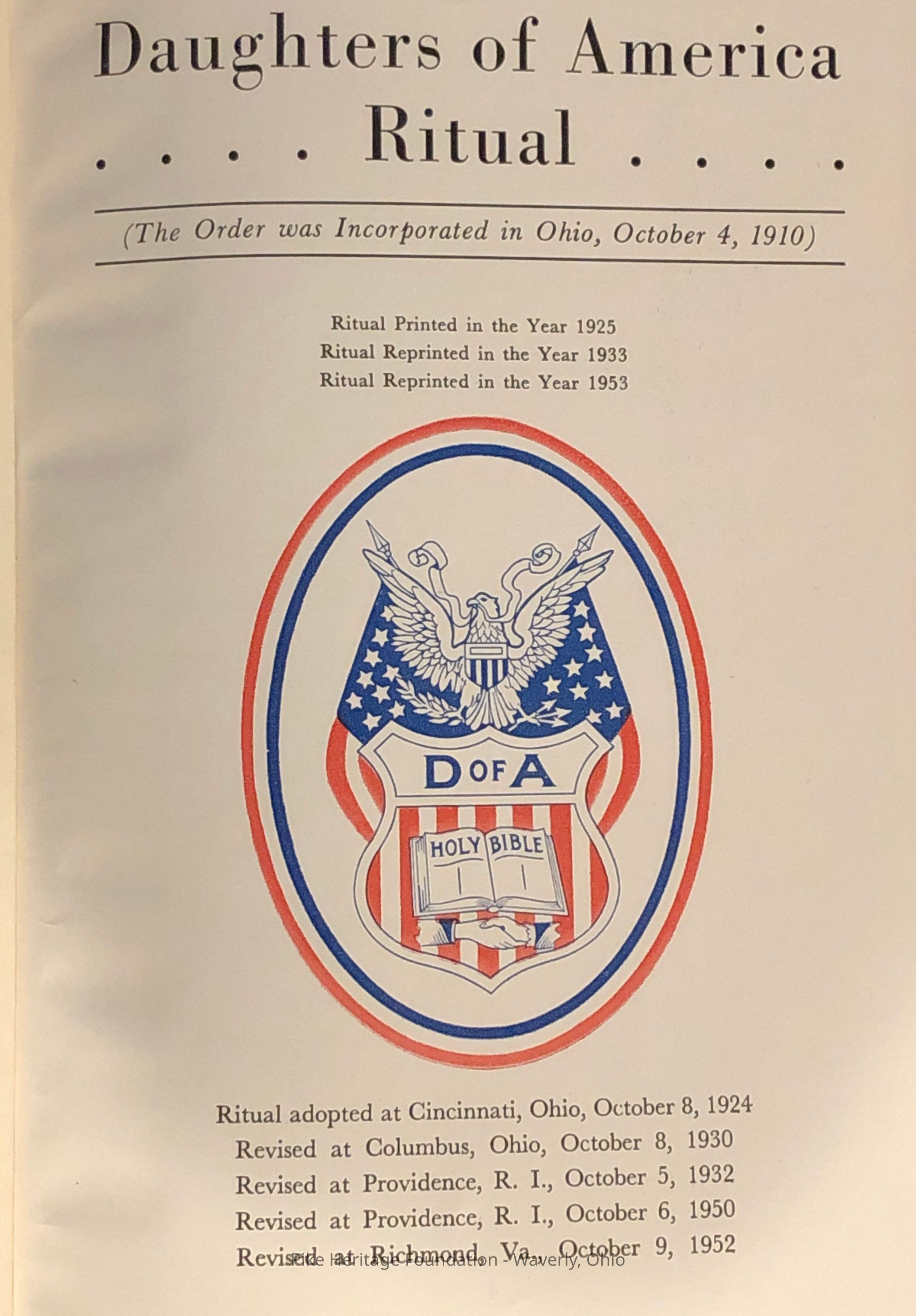 Daughters of America RitualEntry/Object ID