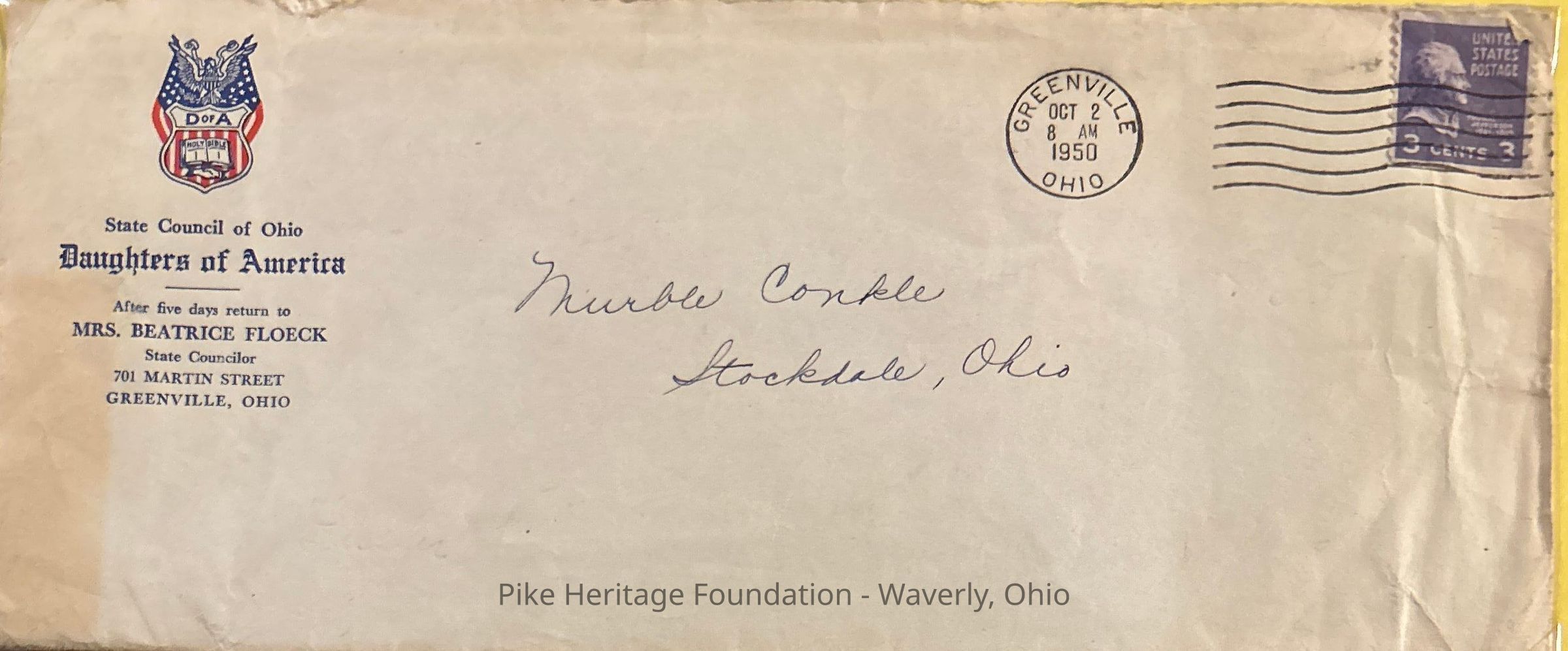 White Hall Council No. 9 was the local Daughters of America lodge located in Stockdale, Ohio in the early to mid 1900’s. Murble Conkle was an officer.Collection