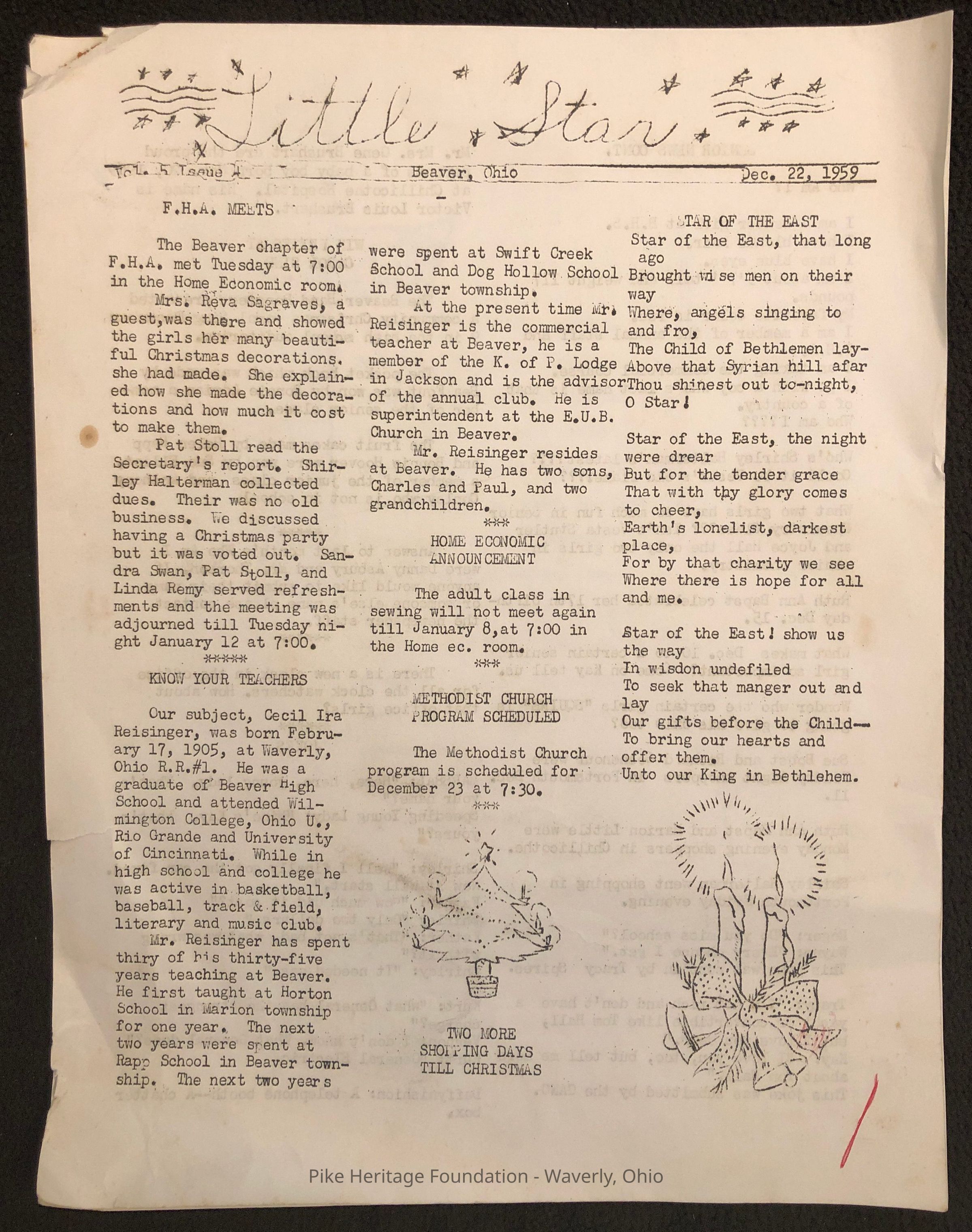Beaver High School Student Council Newsletter “Little Star” published in December 1959.Collection