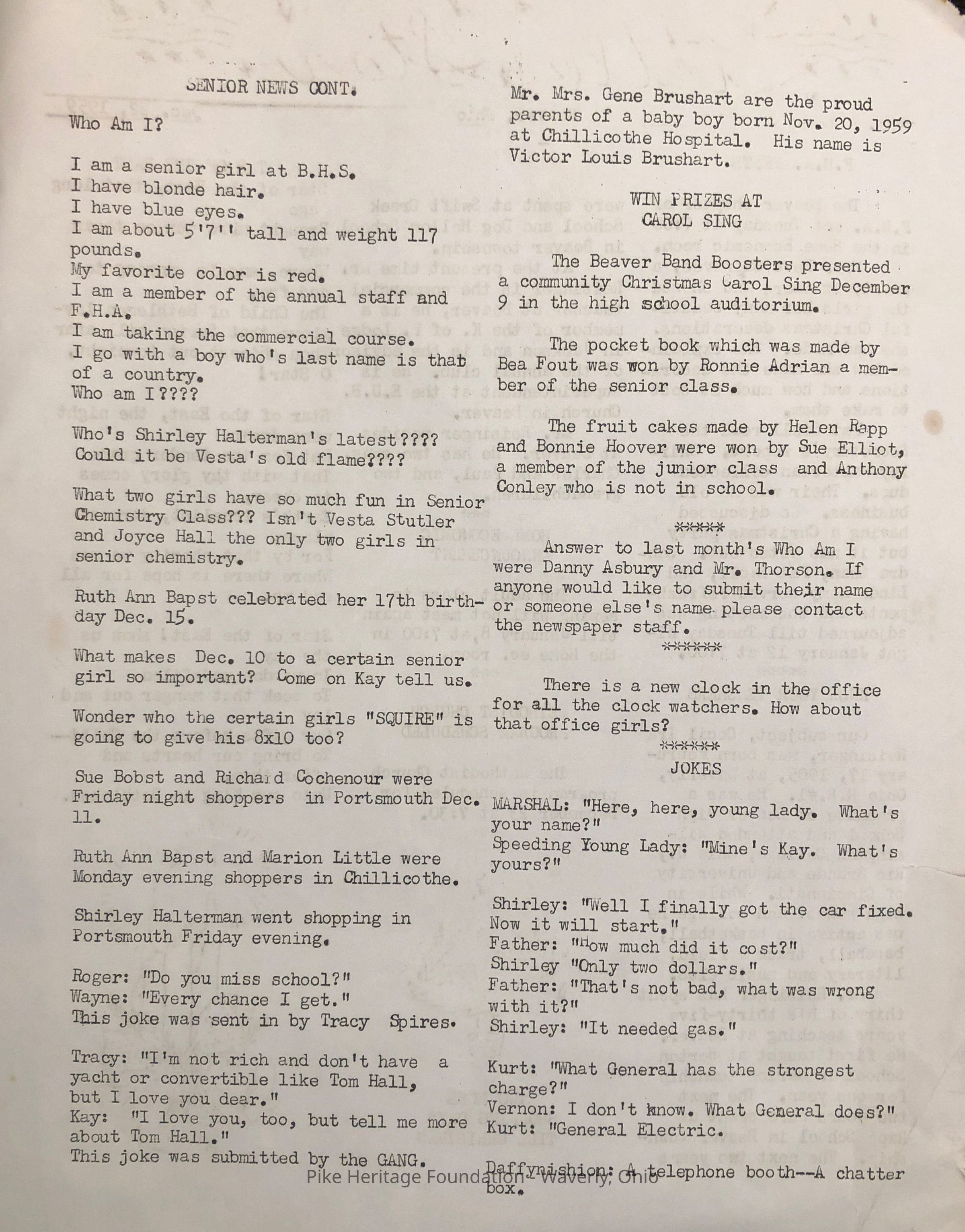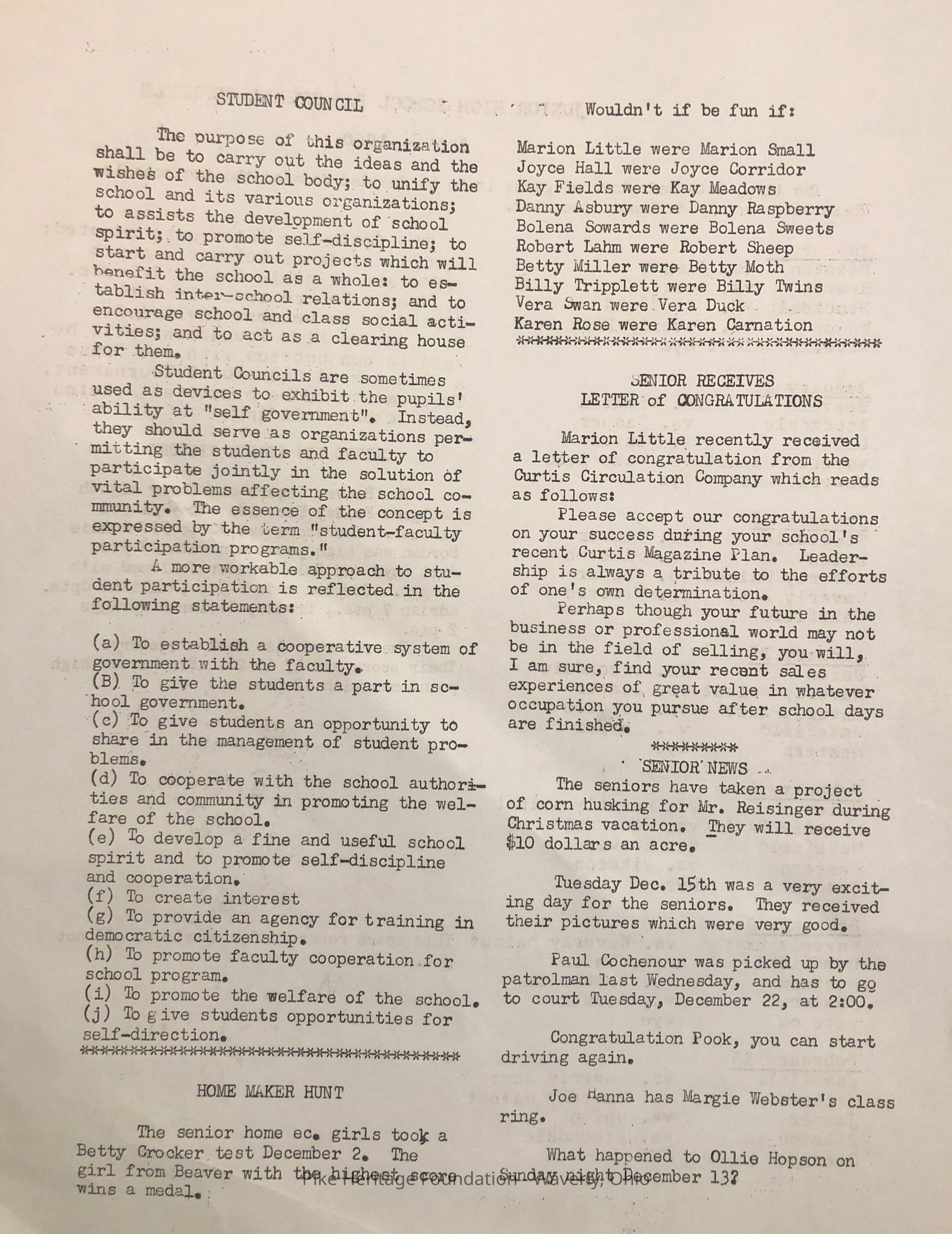Beaver High School Student Council Newsletter - 1959Entry/Object ID