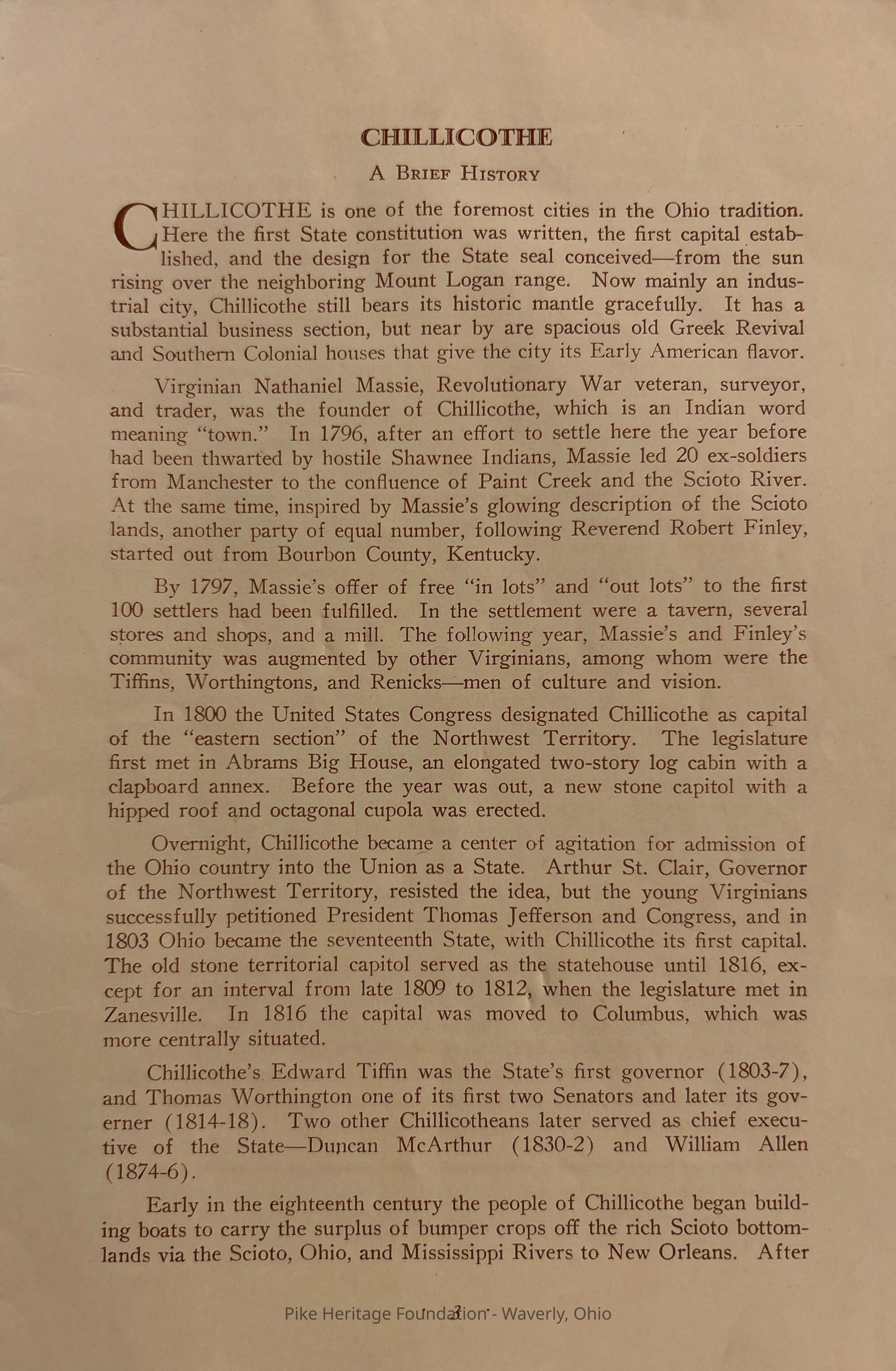 Chillicothe Ohio’s First Capital BookletEntry/Object ID
