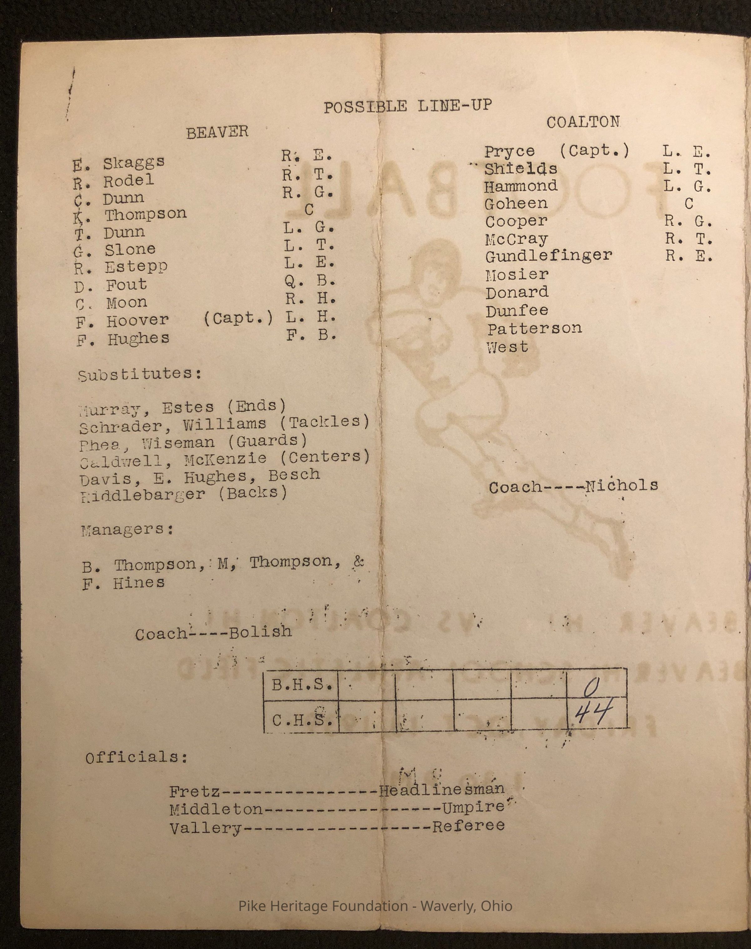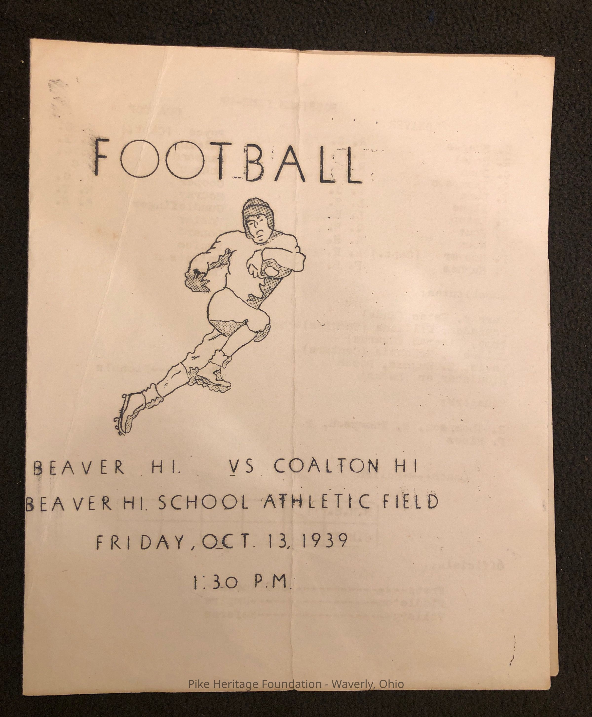 Football program from when Beaver High School played Coalton High School at the Beaver High School athletic field on Friday, October 13, 1939.Collection
