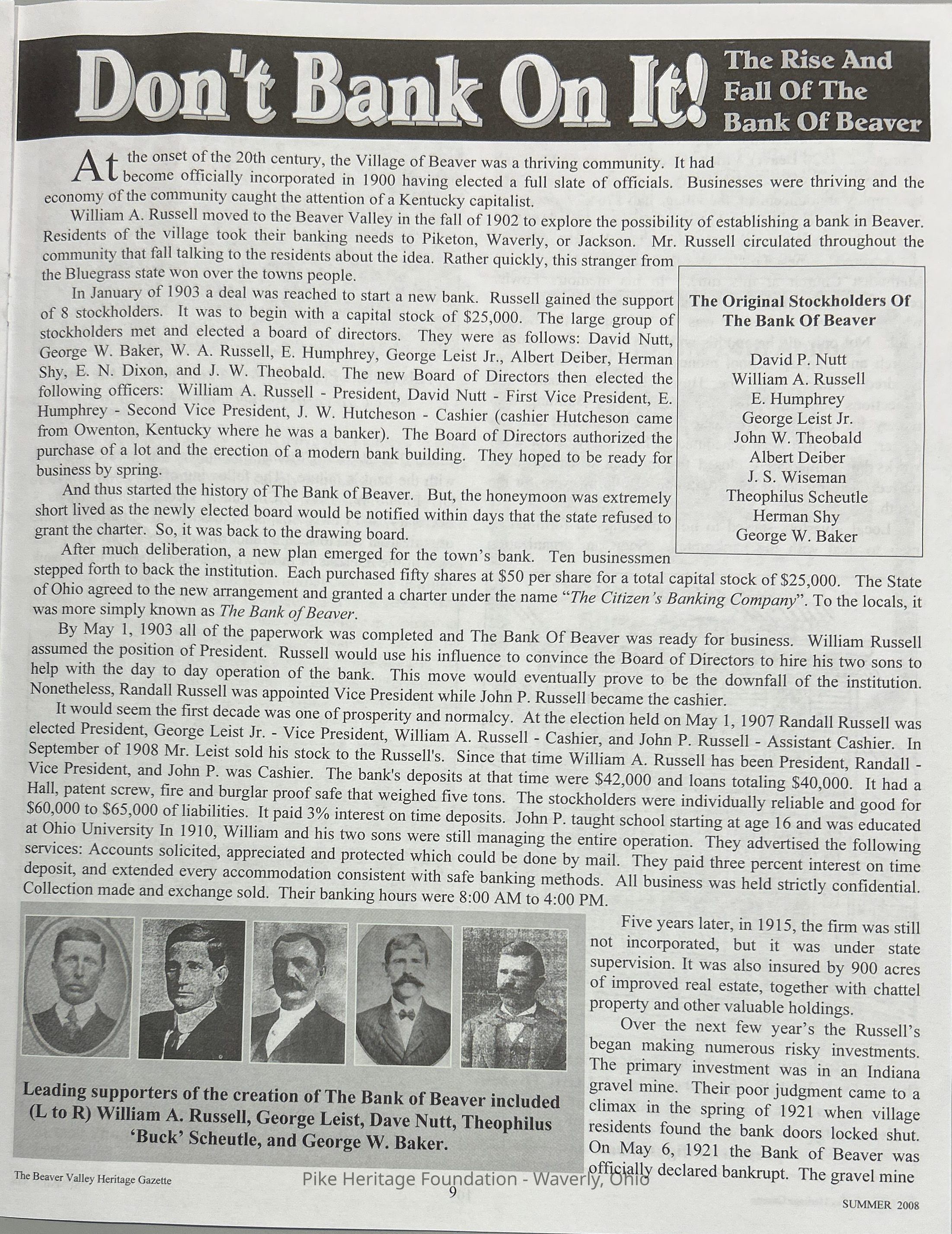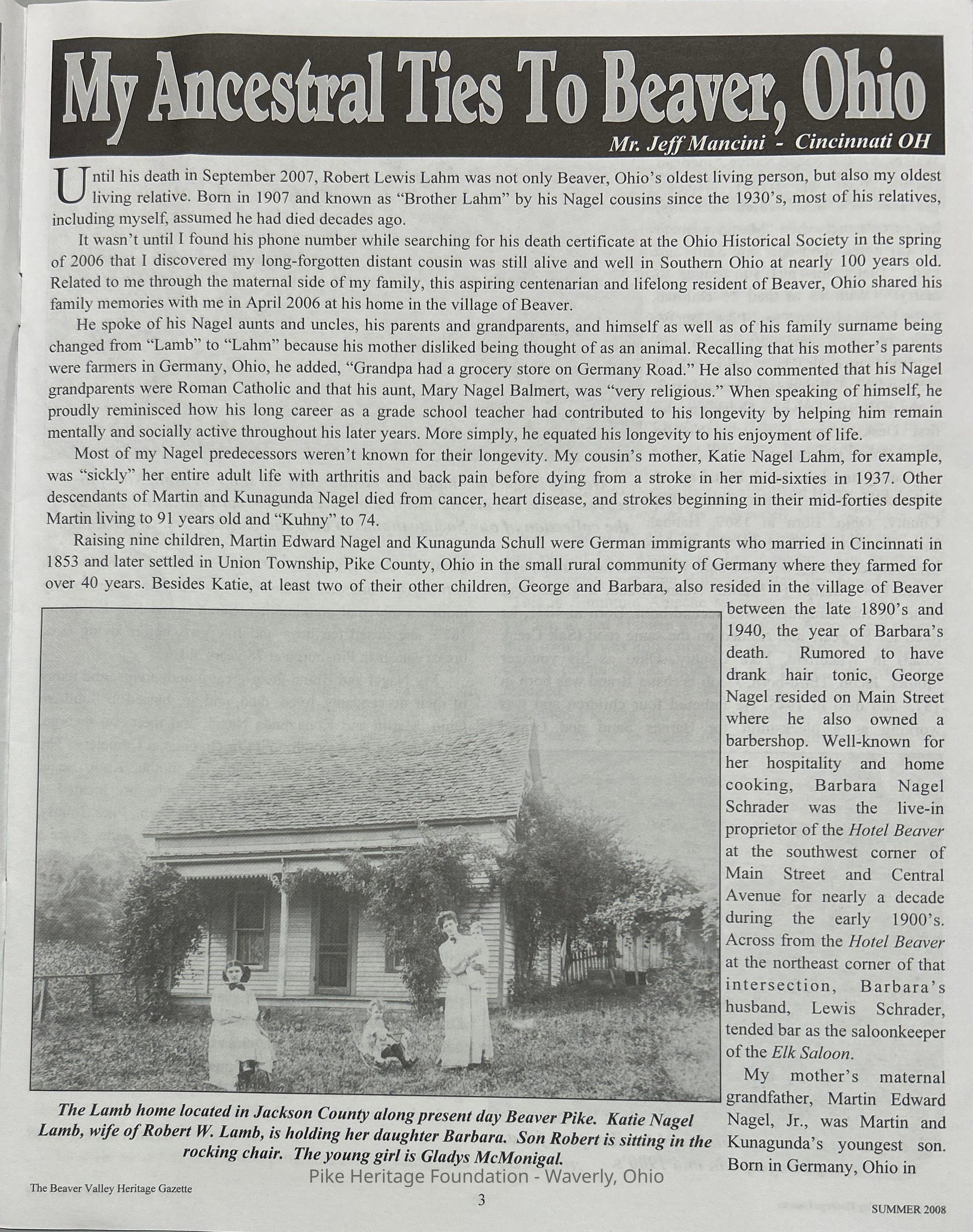 The Beaver Valley Heritage Gazette - Summer 2008Entry/Object ID