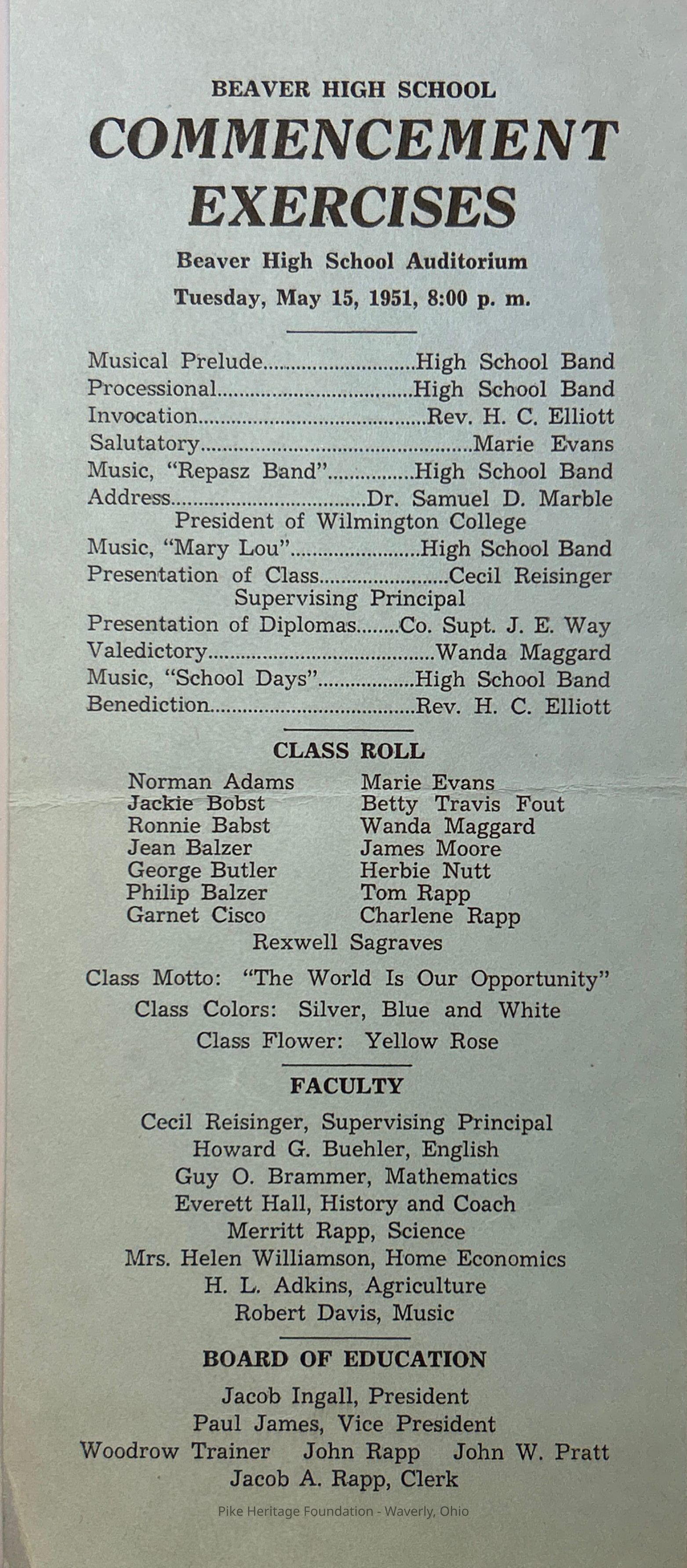 1951 Beaver High School Commencement ProgramEntry/Object ID