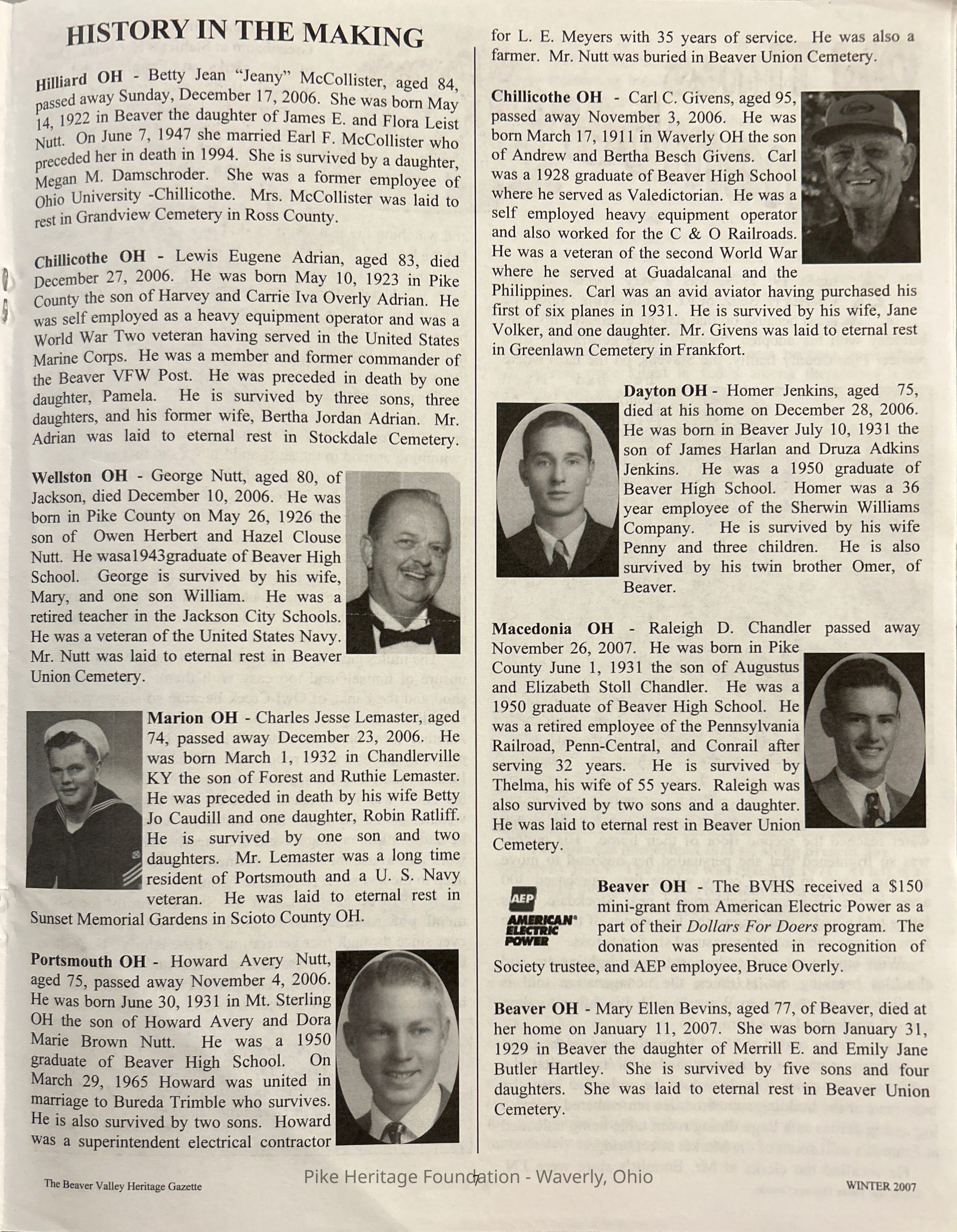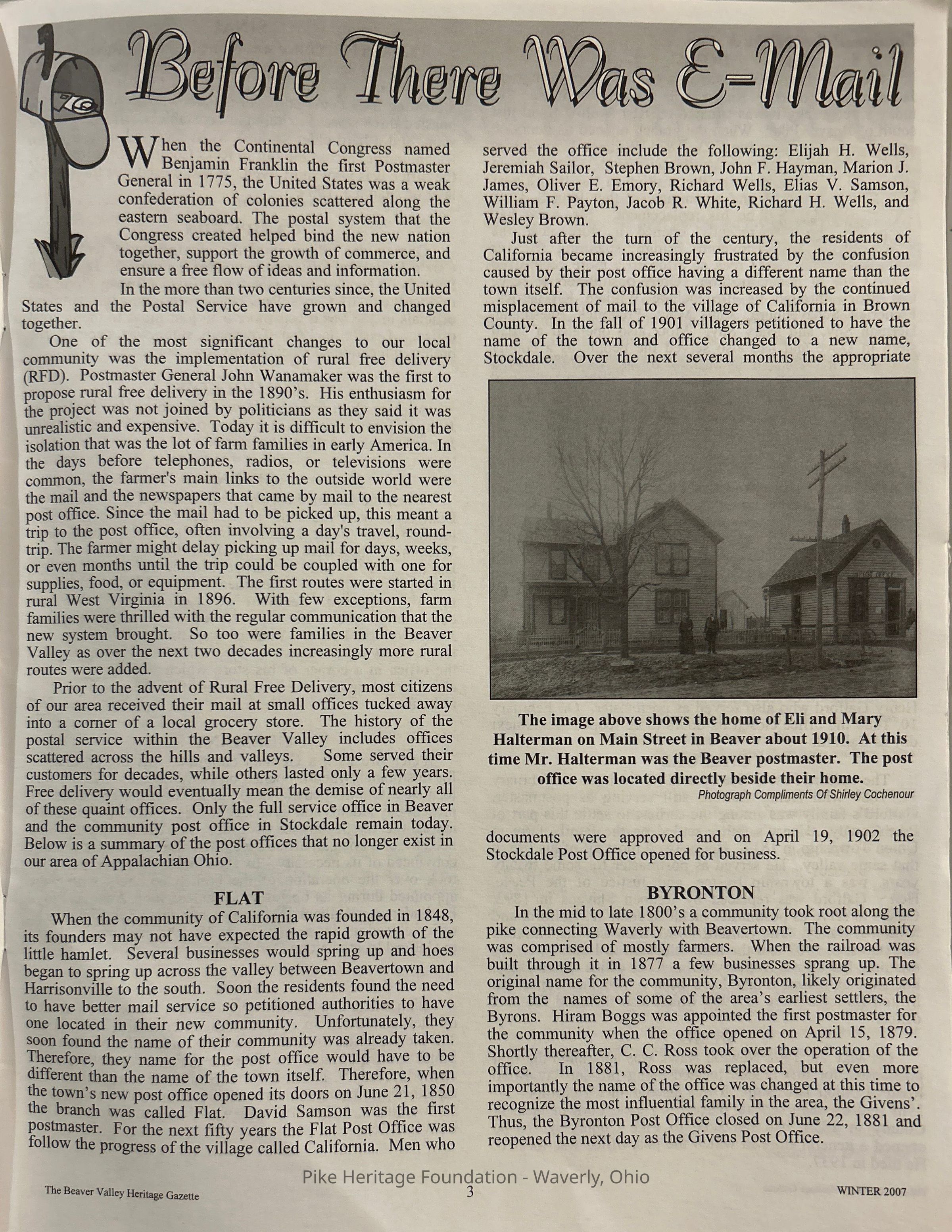 The Beaver Valley Heritage Gazette - Winter 2007Entry/Object ID