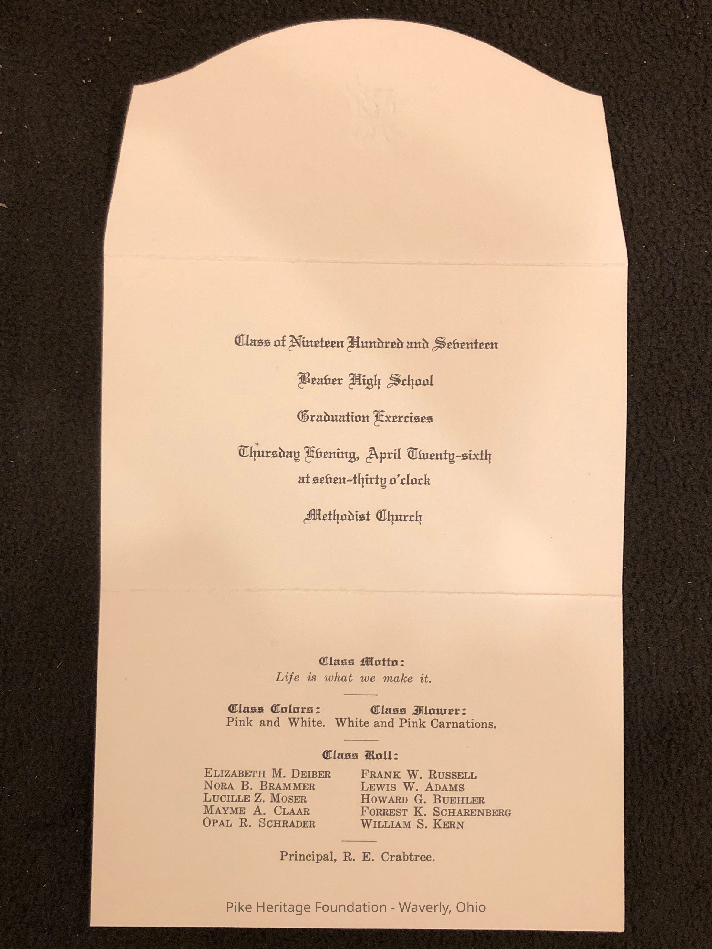 Beaver High School Graduation Announcement - 1917Entry/Object ID