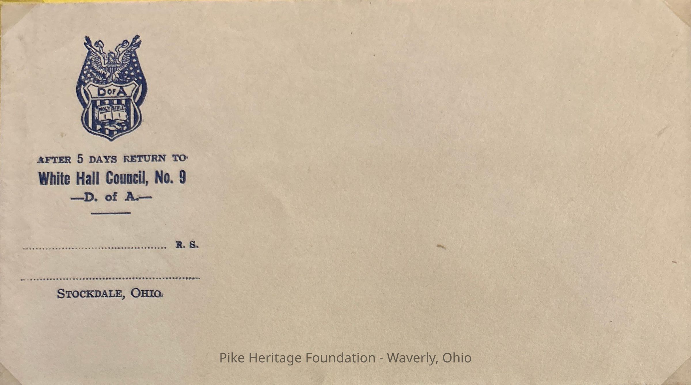 Stockdale Daughters of America EnvelopeEntry/Object ID