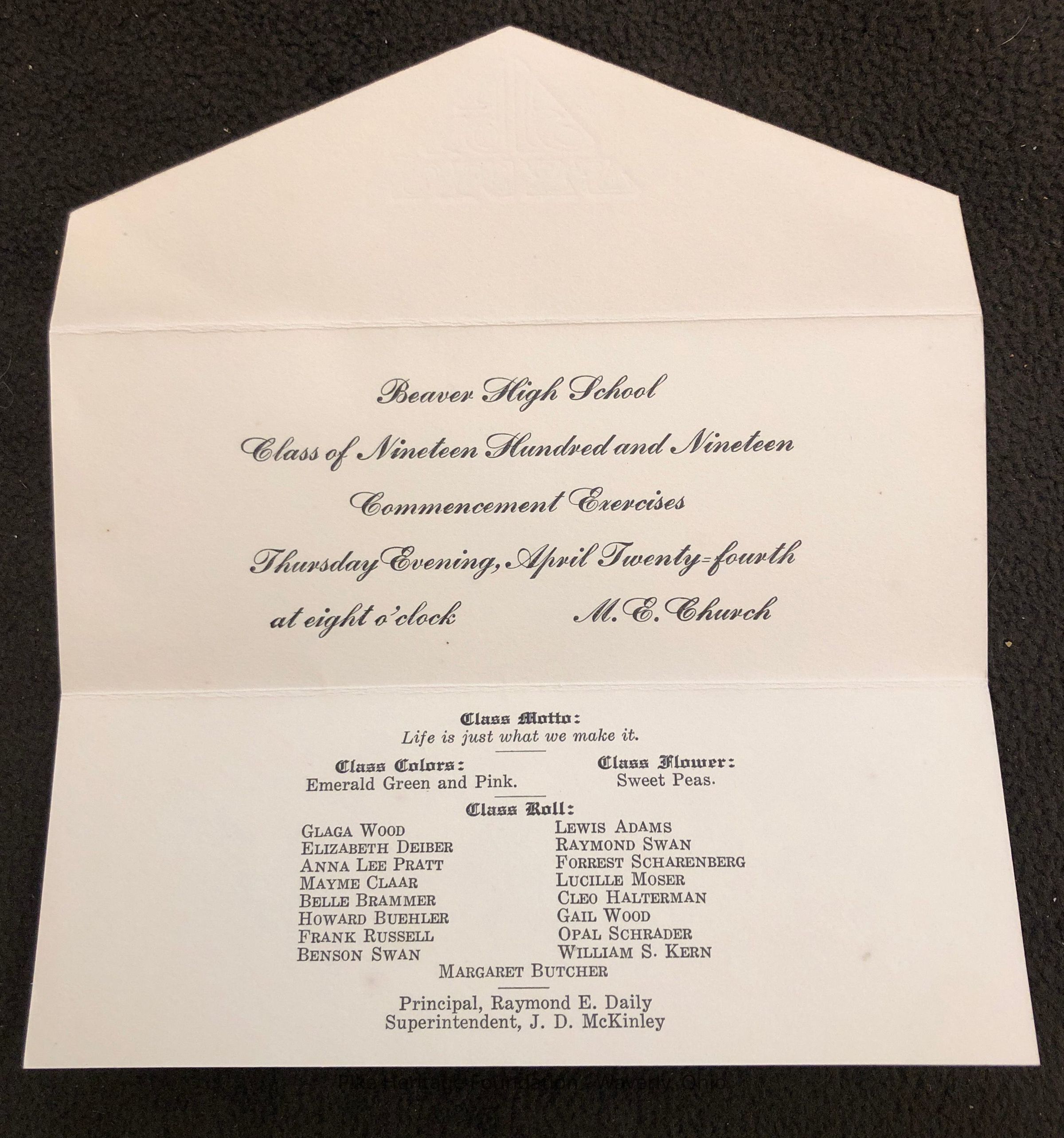 Beaver High School Graduation Announcement - 1919Entry/Object ID