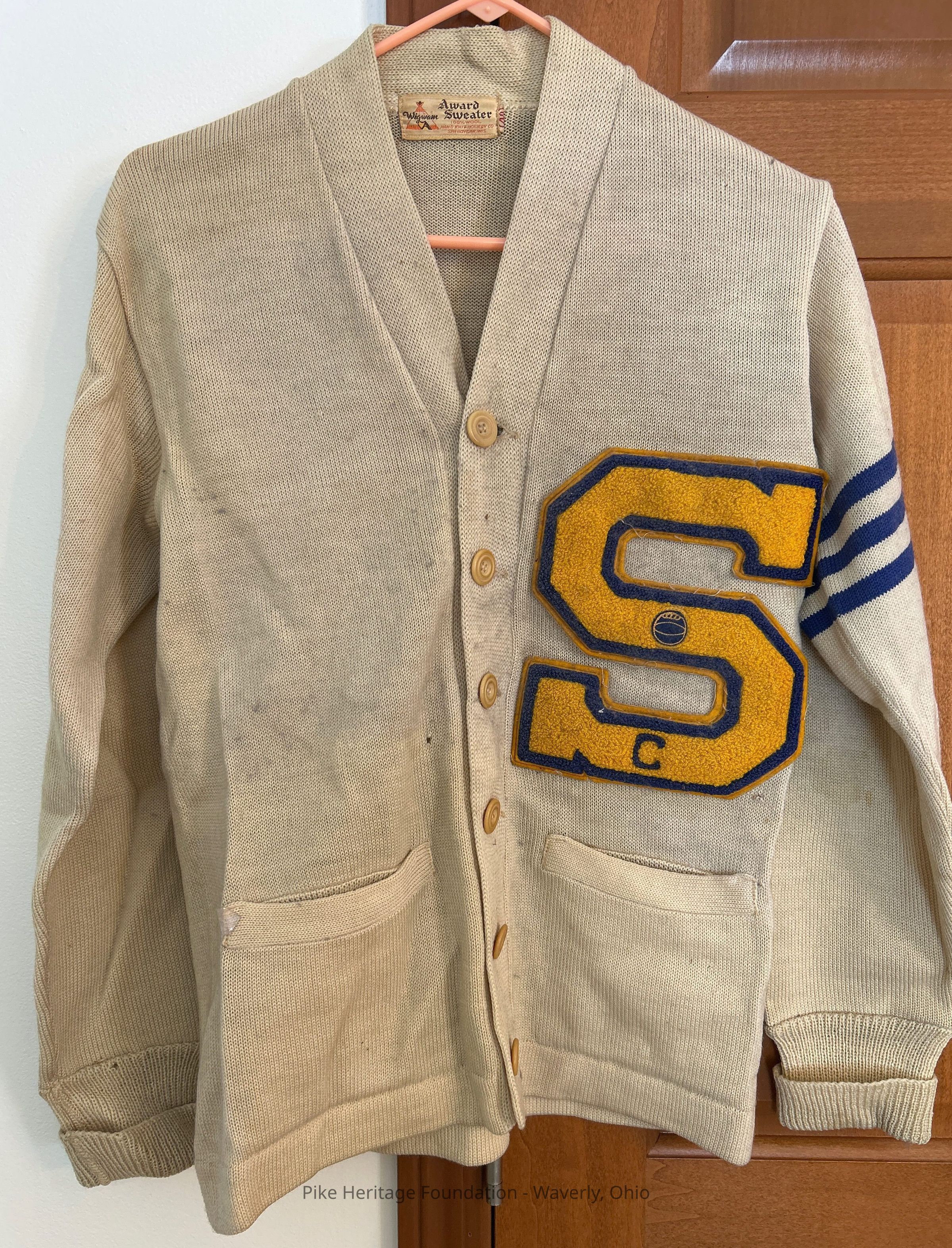 Letterman’s sweater belonging to Uhl Sagraves who was the captain of the Stockdale High School basketball team. Includes Stockdale captain’s “S” on left chest.Collection