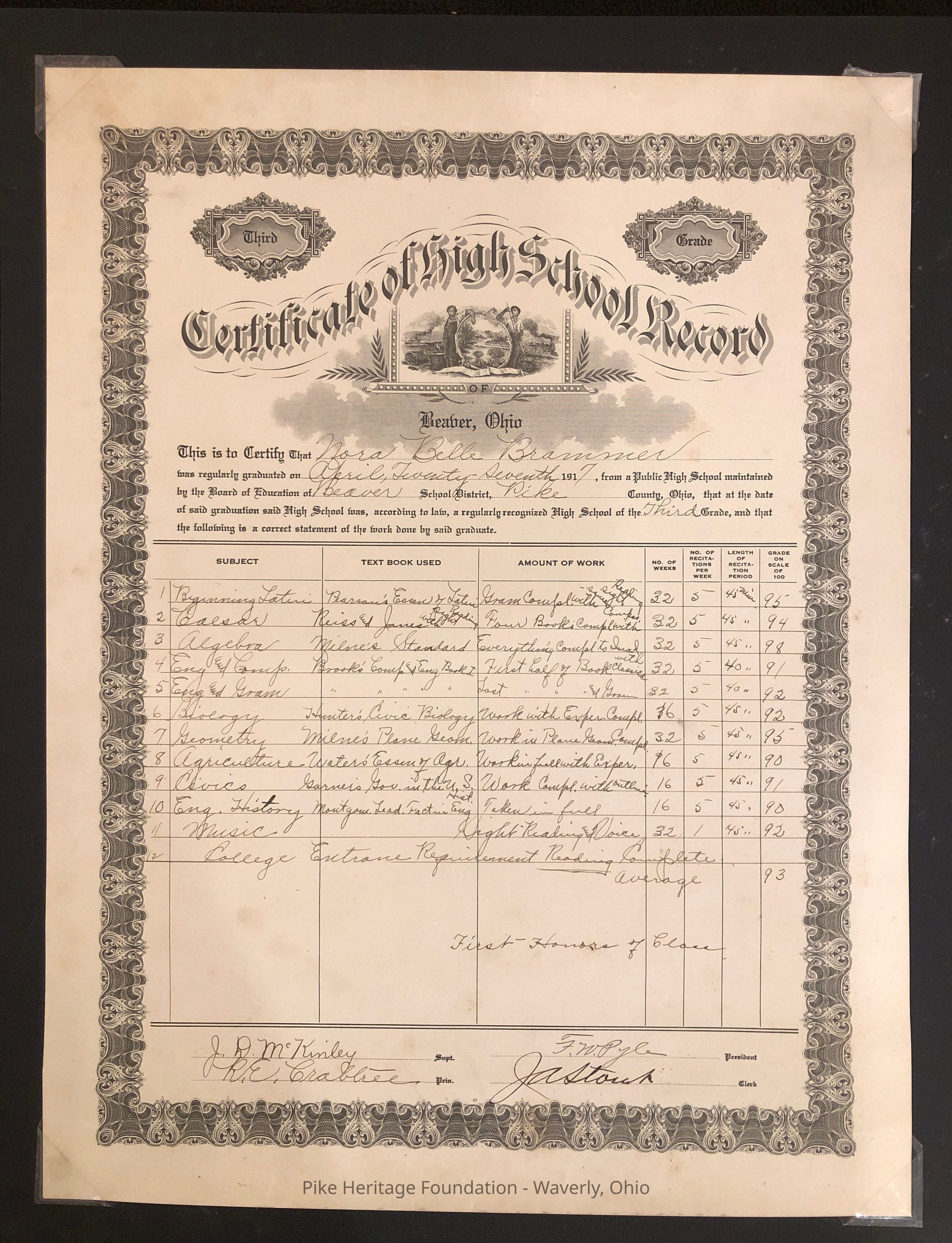 Pike County Certificate of High School Record, Nora Belle Brammer - 1917Entry/Object ID