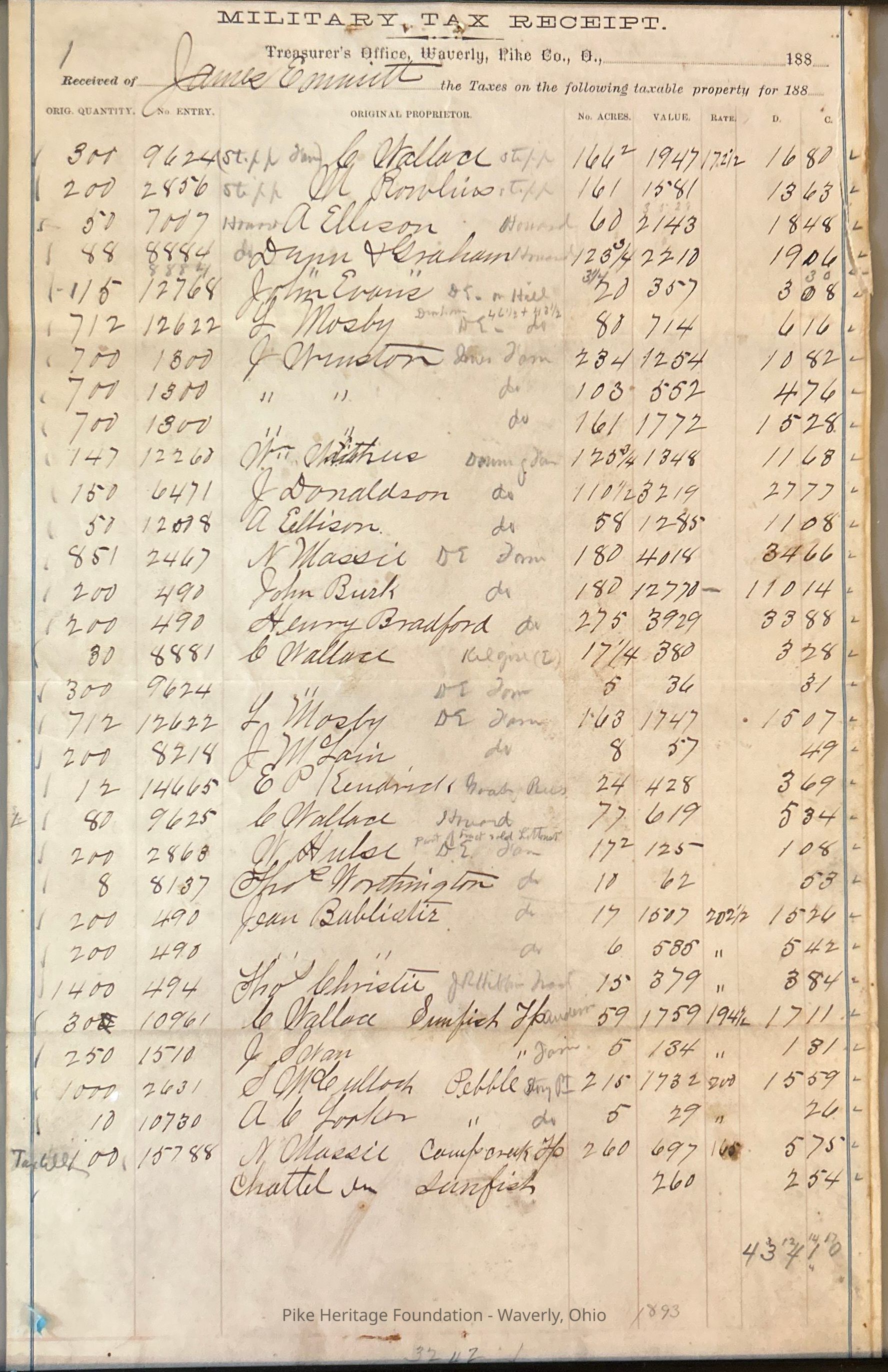 James Emmitt Military Tax Receipt - 1893Entry/Object ID