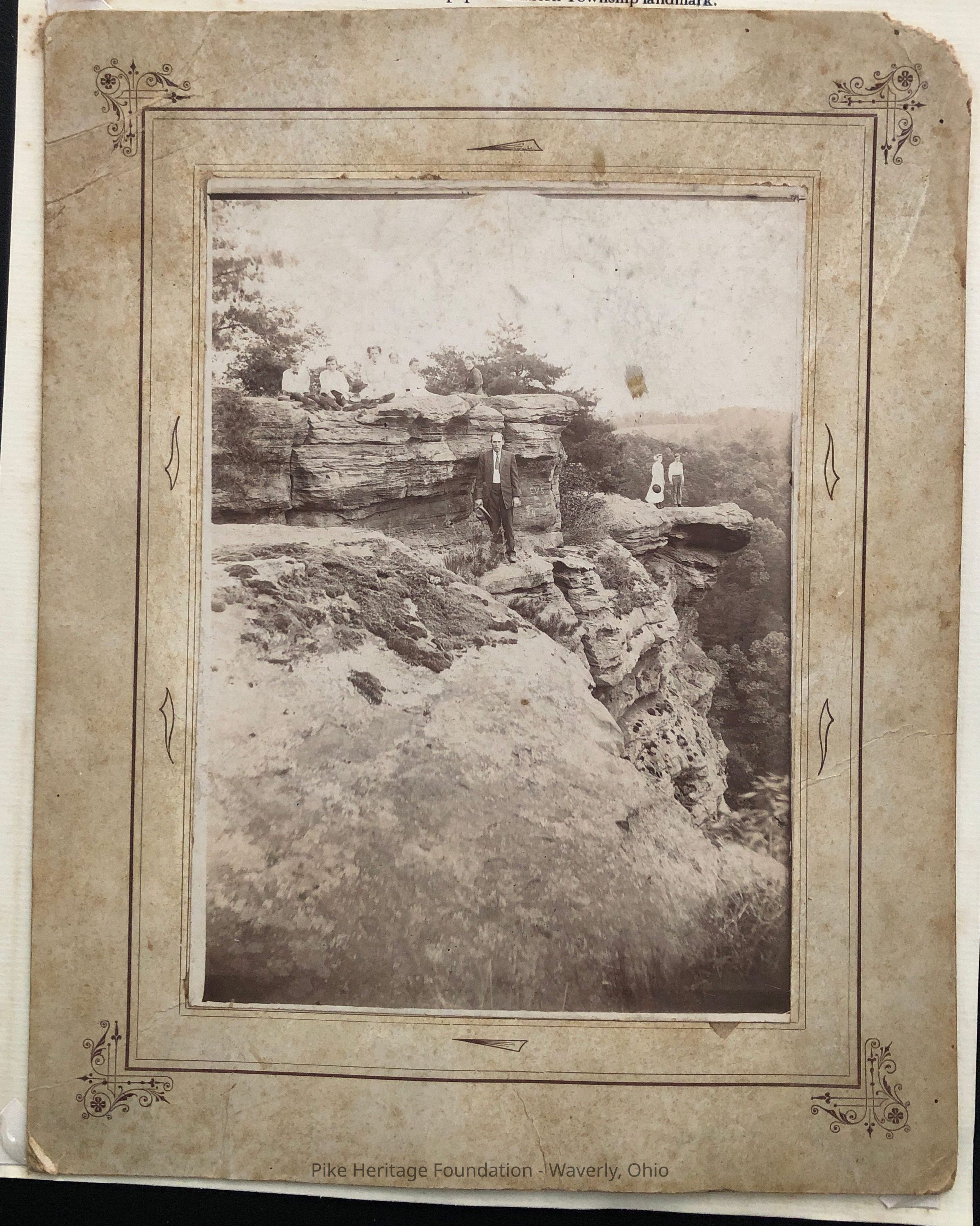 Peters Cave is a geologic landmark located in southeastern Marion Township. Pictured about 1900, it shows the Leffler family of Pike County.Photograph Details