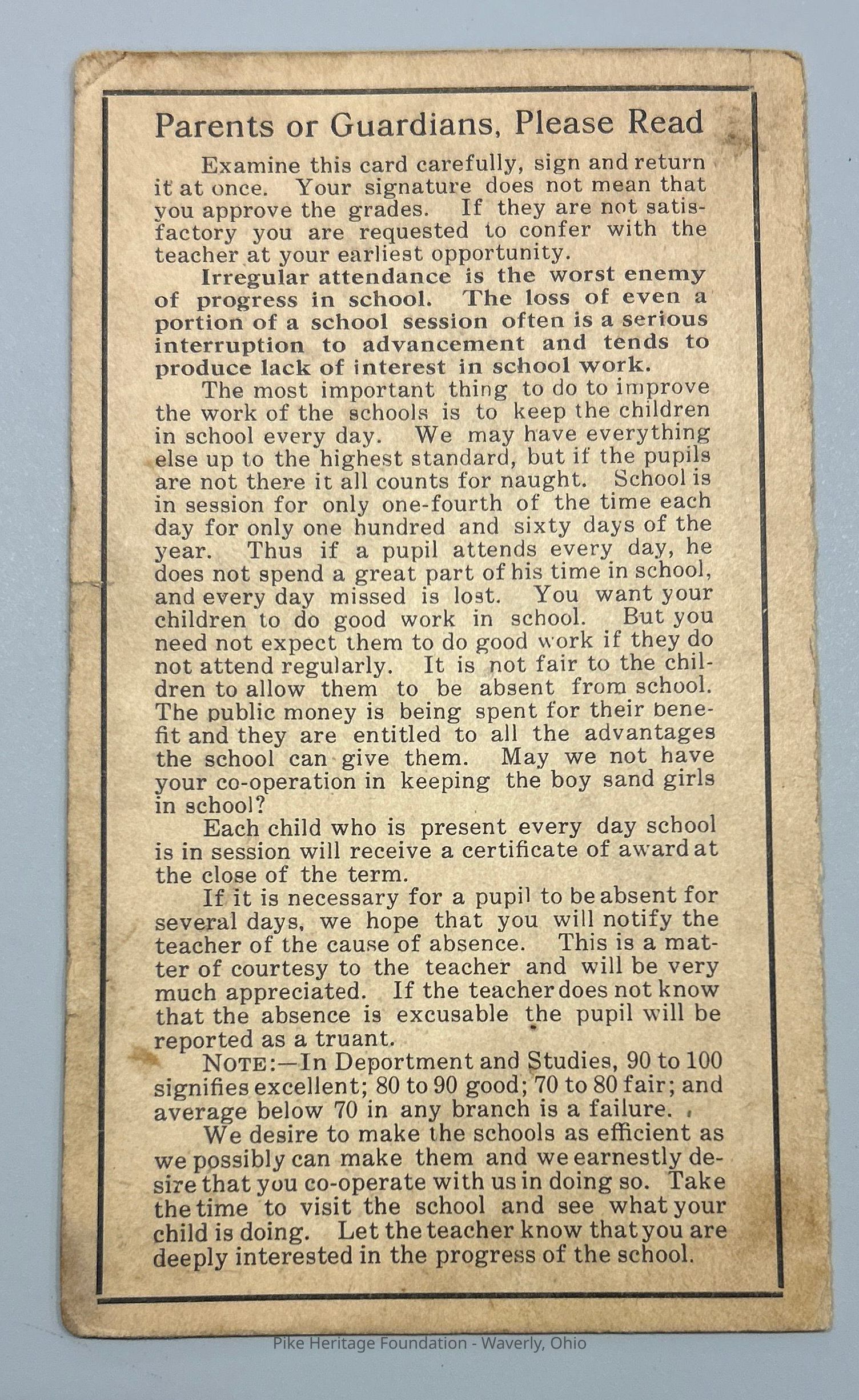 Pike County Public schools grade card 1919Entry/Object ID