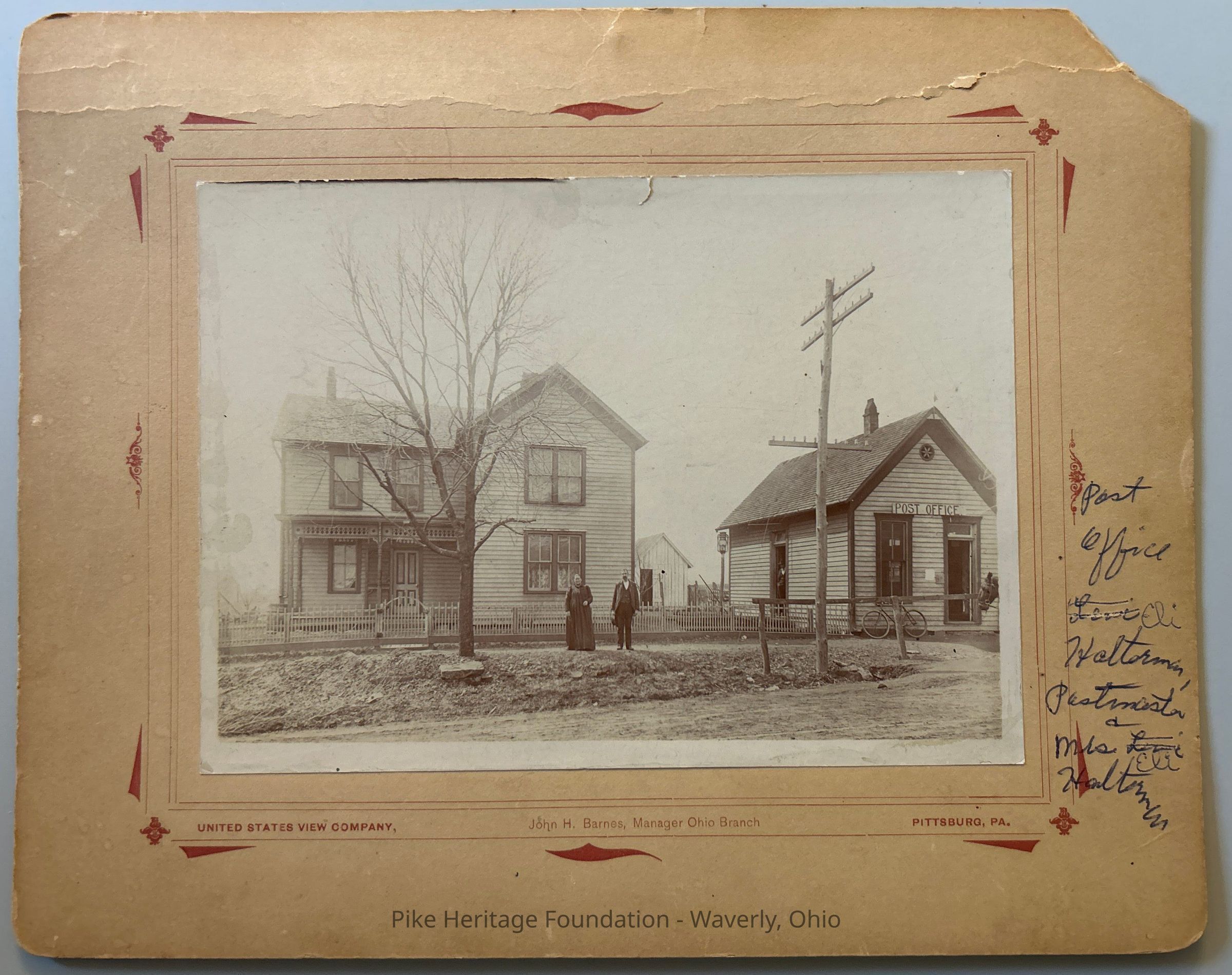 Photograph from approximately 1910 showing the home of Eli Halterman on Main Street in Beaver. In addition it shows his post office located next to the residence when Eli was the postmaster in the village.Collection