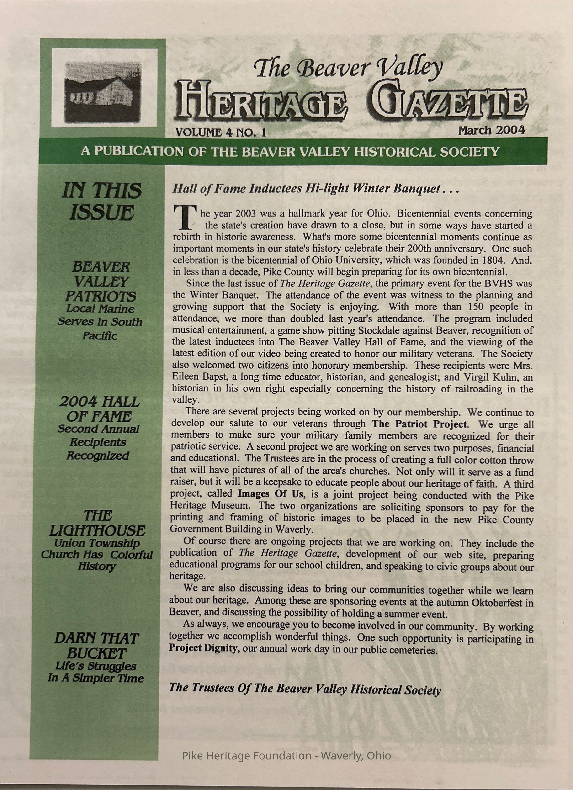 The Beaver Valley Heritage Gazette - December 2003Entry/Object ID