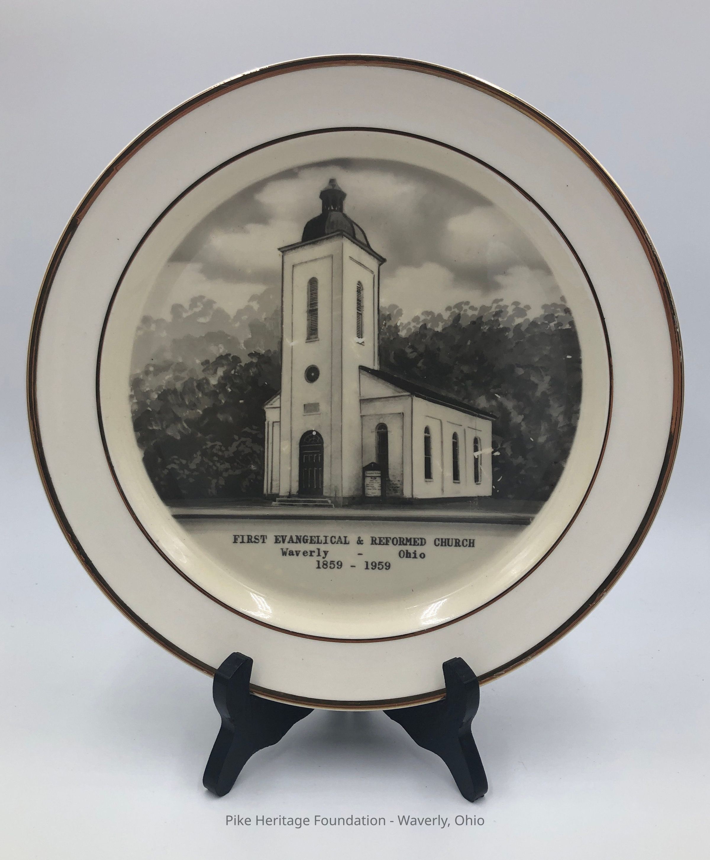 100th anniversary commemorative plate for the First Evangelical & Reformed Church located at 110 South Market Street in Waverly, Ohio. It now houses the Pike Heritage Museum.Acquisition