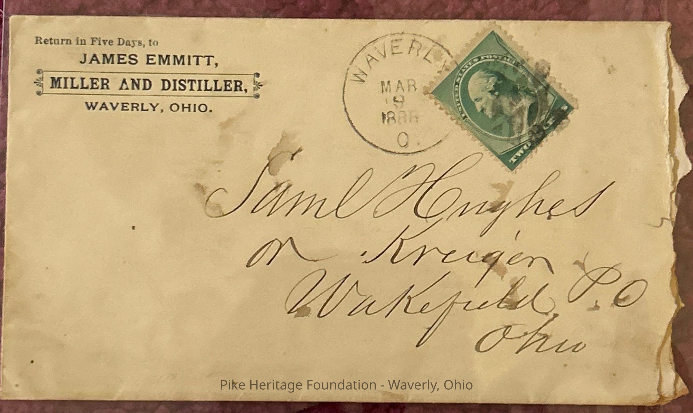 James Emmitt envelope from his mill and distillery located in Waverly, Ohio.Collection