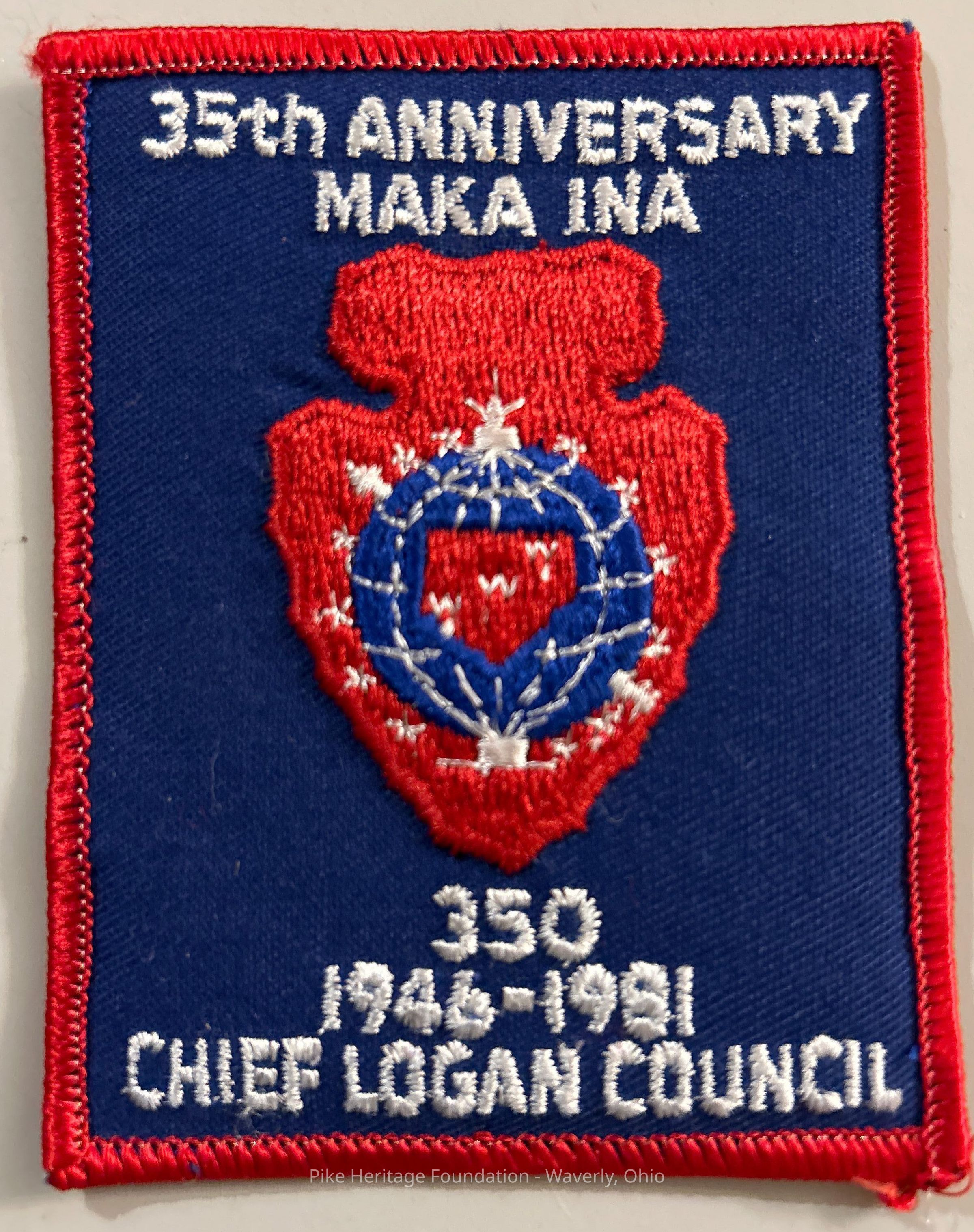 Boy Scouts of America Order of the Arrow patch for Maka-Ina Lodge 350 recognizing its 35th anniversary.Collection